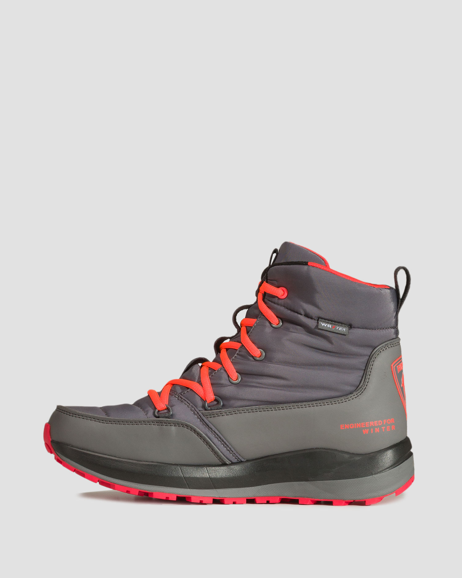 Buty zimowe ROSSIGNOL ROSSI PODIUM z serii HERO w stylu śniegowców to komfortowy model, który zapewni Ci komfort i wyjątkowe ciepło podczas apres-ski, kiedy potrzebujesz odpoczynku i wytchnienia po całym dniu na stoku, a także podczas zimowego spaceru po mieście. Wytrzymała podeszwa oferuje świetną trakcję, niezbędną podczas spacerów po kurorcie. Wykonane z syntetycznej tkaniny z hydrofobową powłoką DWR, chroniącą przed wilgocią i lekkim opadem. Wyściółka wewnętrzna z wodoodporną membraną, która zapewni suchy komfort w śniegu. Lekka, syntetyczna ocieplina zapewni optymalny komfort i przyjemnie otula stopę. Wsuwana konstrukcja pozwala na szybkie zakładanie i ściągnięcie. Podszewa z jodełkowym bieżnikiem jest wykonana z gumy pochodzącej w 100% z recyklingu. Wewnętrzne wkładki z wypustkami, które masują i relaksują stopy. Zewnętrzna strona cholewki ozdobiona sportowym napisem HERO.