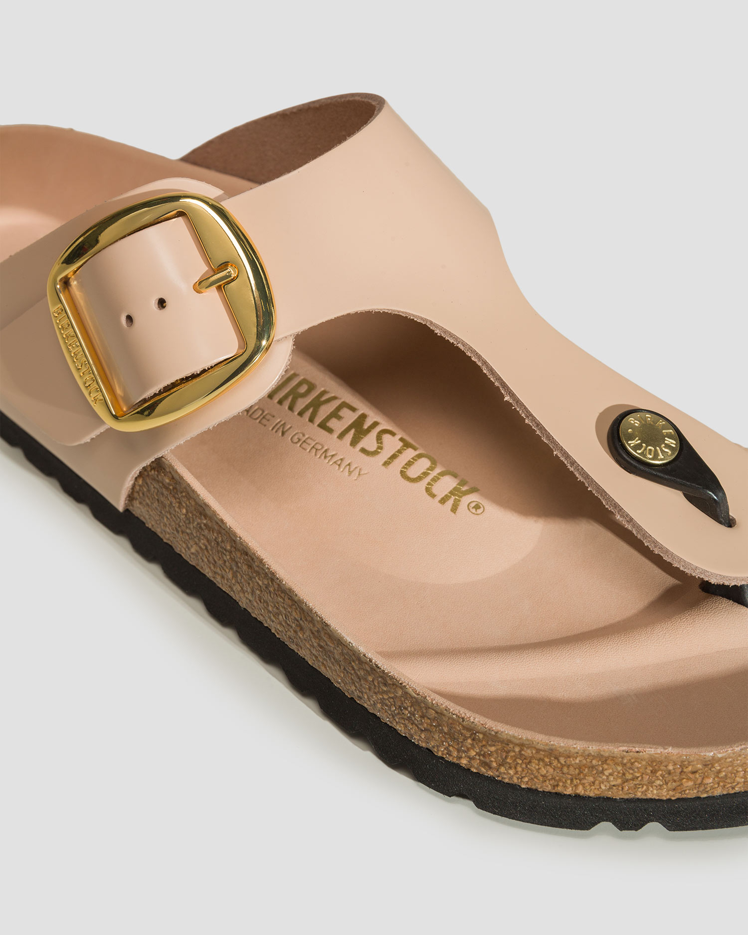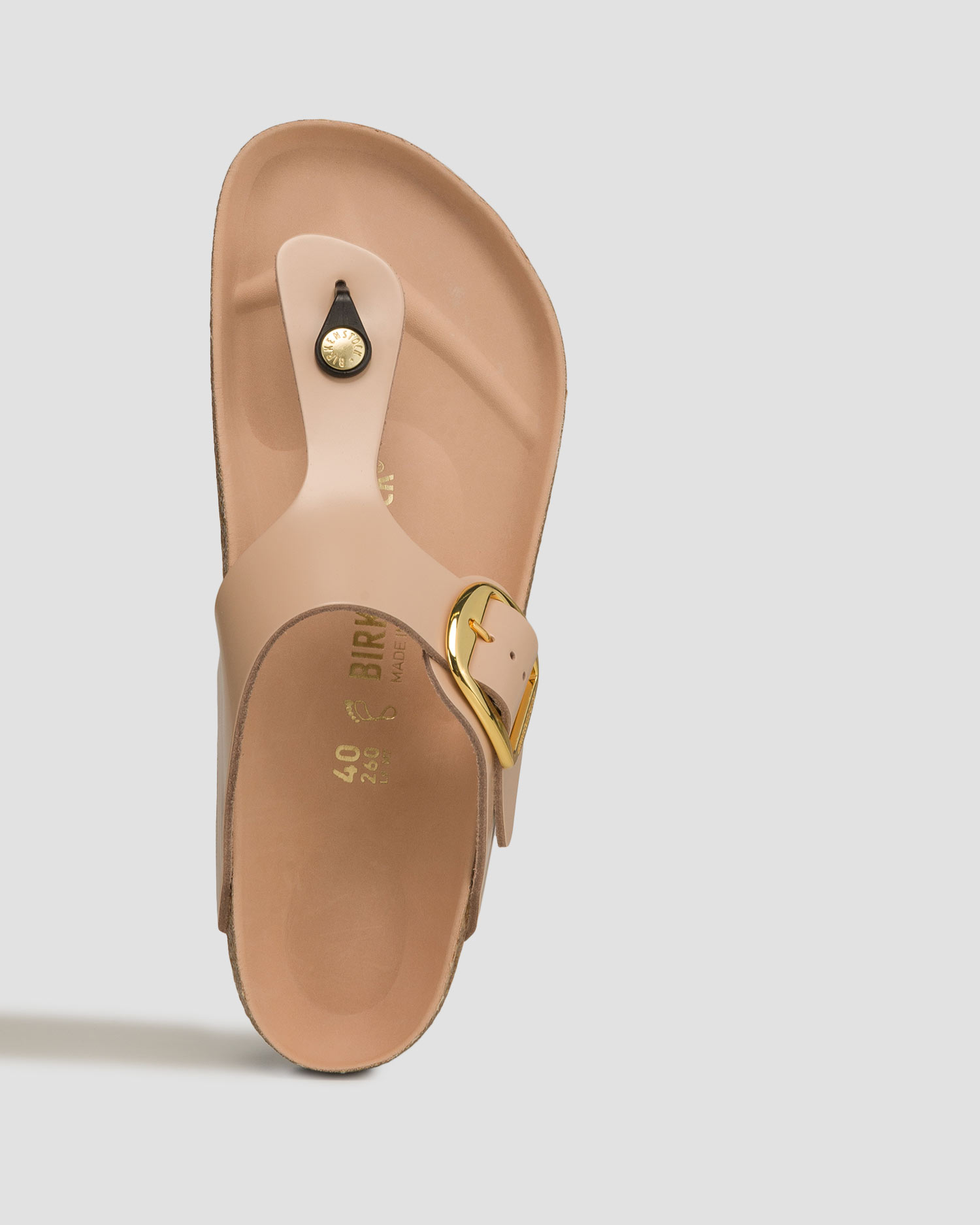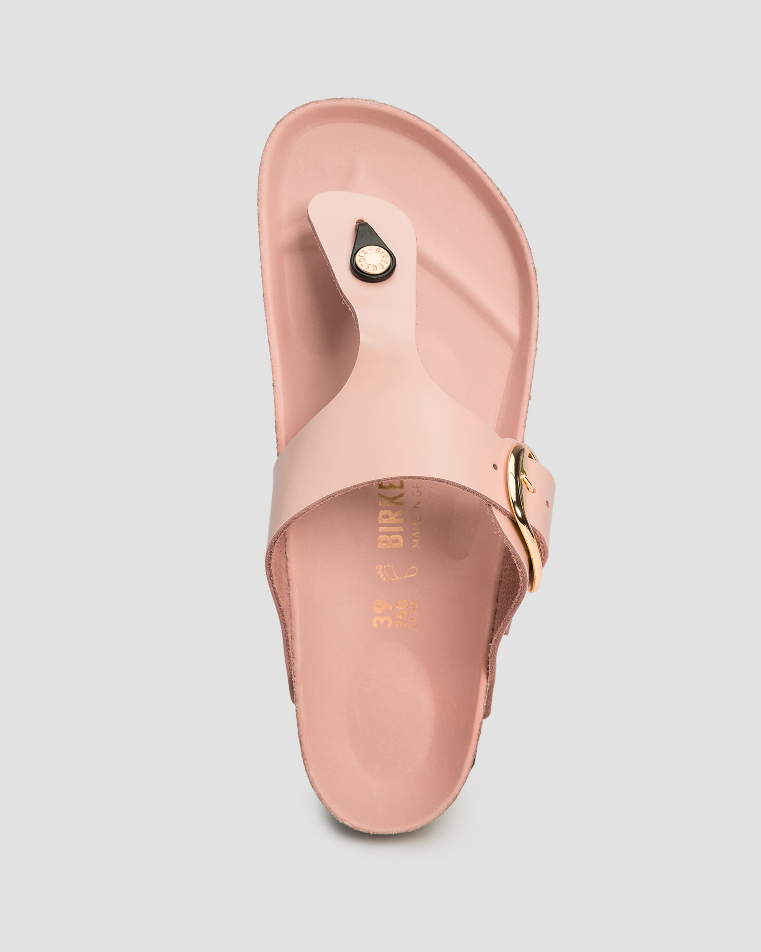 Béžové dámské pantofle Birkenstock Gizeh Big Buckle Nubuck Leather jsou nabídkou, která doplní Váš letní set jak na každý den, tak na Vaši dovolenou. Svrchní materiál je vyroben z přírodní kůže, která se přizpůsobí noze a poskytuje maximální pohodlí. Anatomická korko-latexová stélka s měkkou koženou podšívkou zajišťuje naprosté pohodlí při celodenním nošení. Podešev je vyrobena z ultralehké EVA pěny, která zajistí dostatečné odpružení a podporu chodidla.