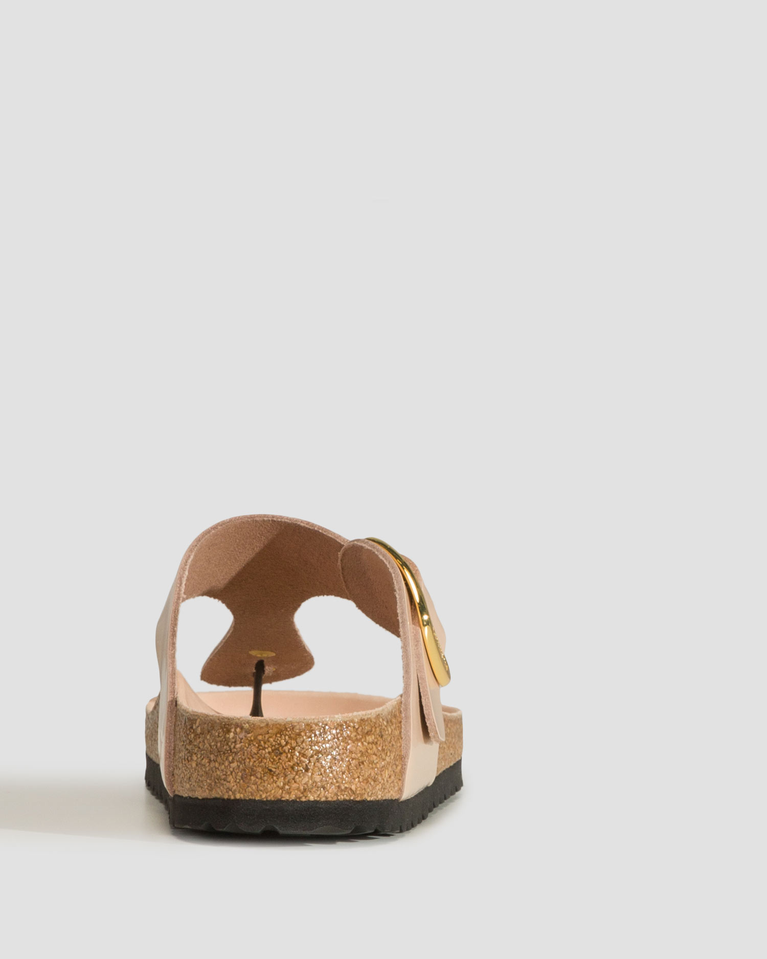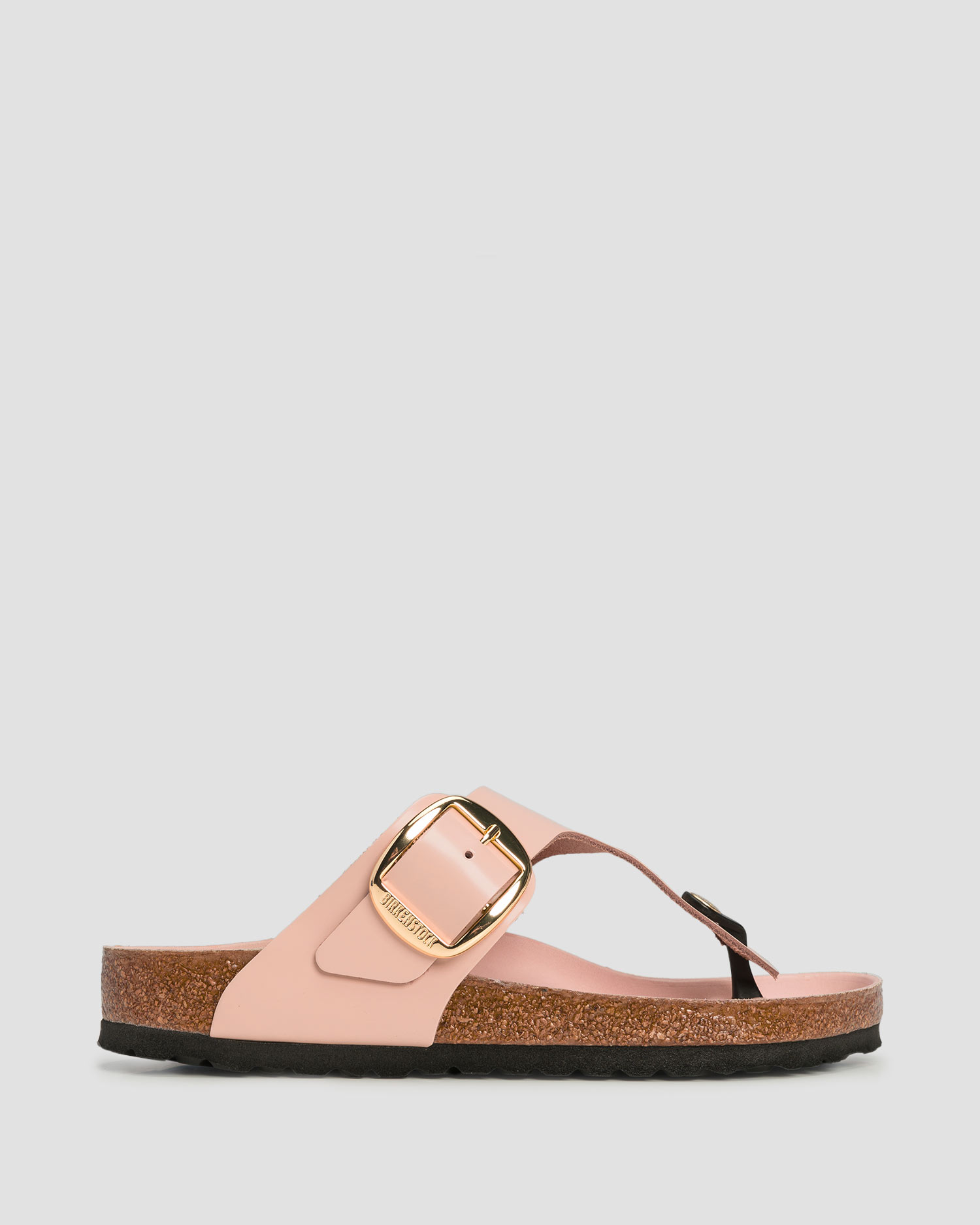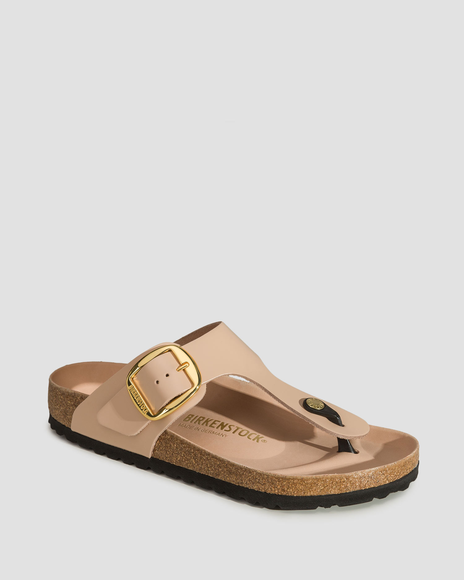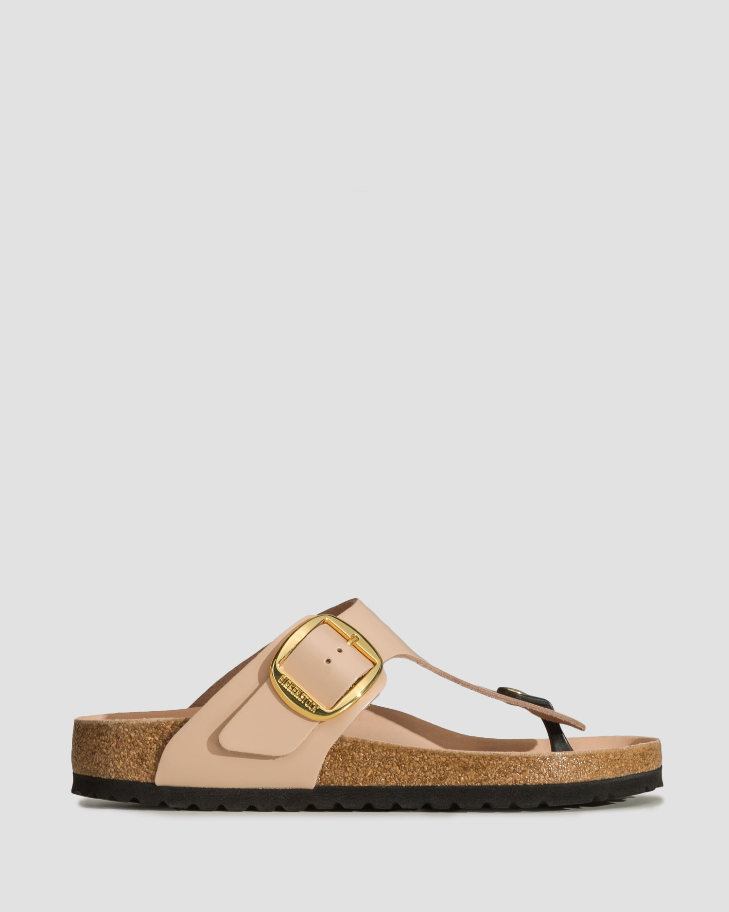 Béžové dámské pantofle Birkenstock Gizeh Big Buckle Nubuck Leather jsou nabídkou, která doplní Váš letní set jak na každý den, tak na Vaši dovolenou. Svrchní materiál je vyroben z přírodní kůže, která se přizpůsobí noze a poskytuje maximální pohodlí. Anatomická korko-latexová stélka s měkkou koženou podšívkou zajišťuje naprosté pohodlí při celodenním nošení. Podešev je vyrobena z ultralehké EVA pěny, která zajistí dostatečné odpružení a podporu chodidla.