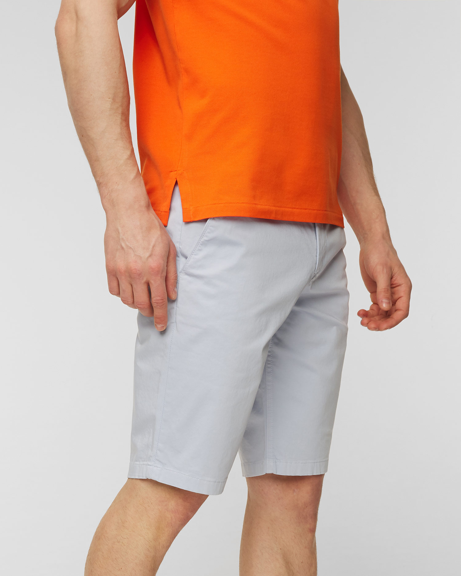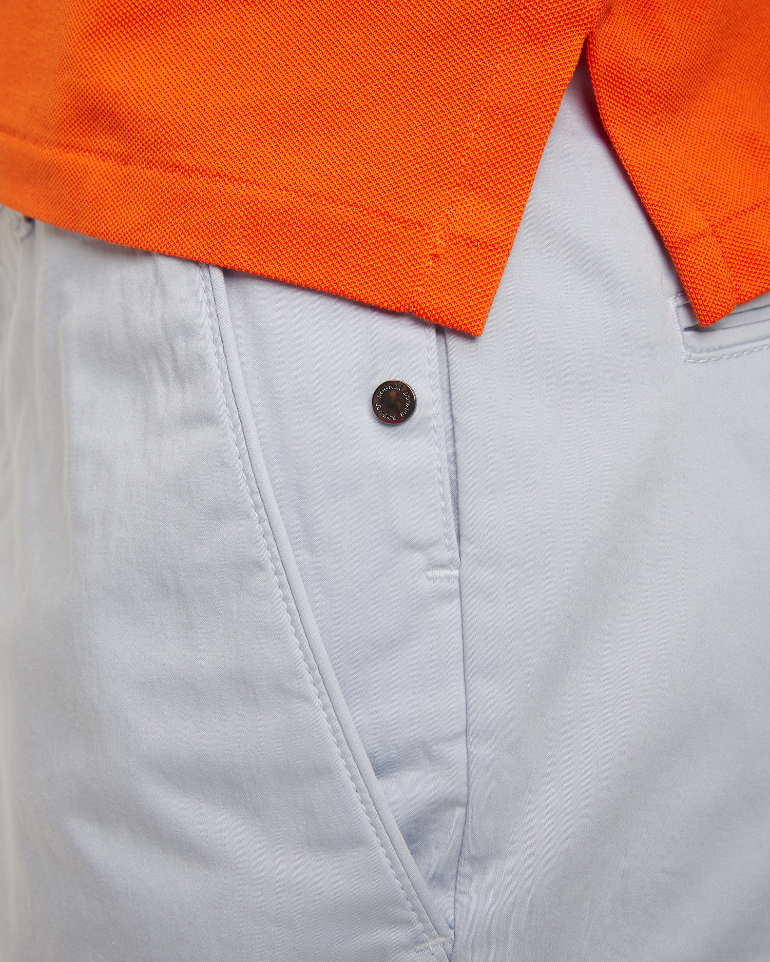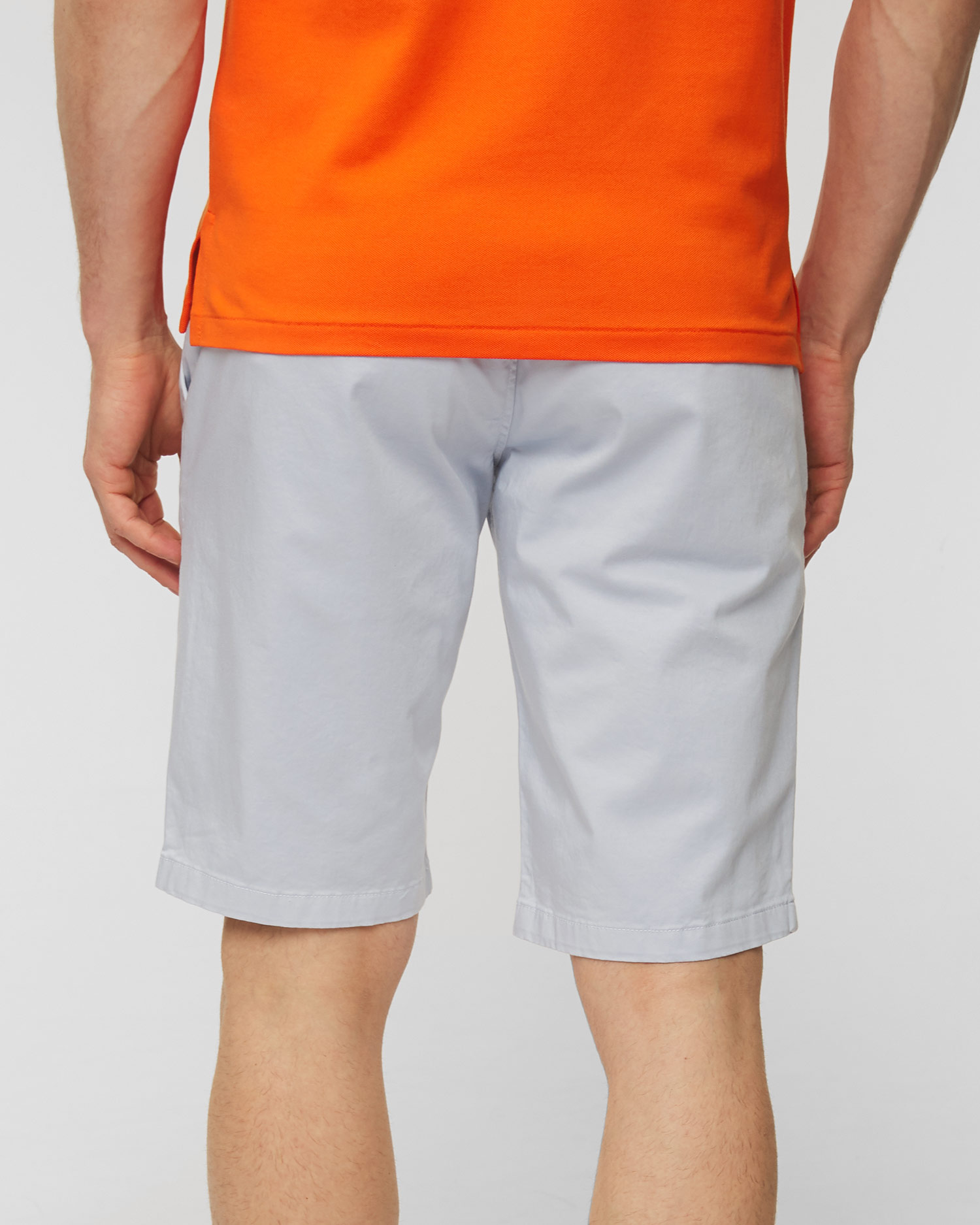 Šortky BOGNER Miami-G5 z husté, saténové bavlny s elastickou úpravou nesmí chybět v pánském šatníku. Klasický střih byl stylově aktualizován. Rovné nohy. Šortky se zapínáním na metalizovanou patentku s logem, vnitřním knoflíkem a skrytým zipem. Pásek s poutky na pásek do šířky 4 cm. Kožená nášivka s logem na zadní straně. Francouzské boční kapsy s paspulí, na levé straně další kapsa na mince se signovaným nýtem. Dvě klasické kapsy vzadu a originální velká nášivka s kovovým logem BOGNER.