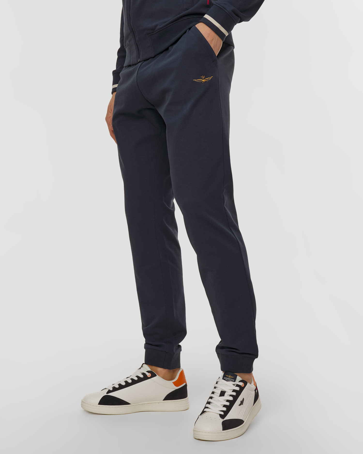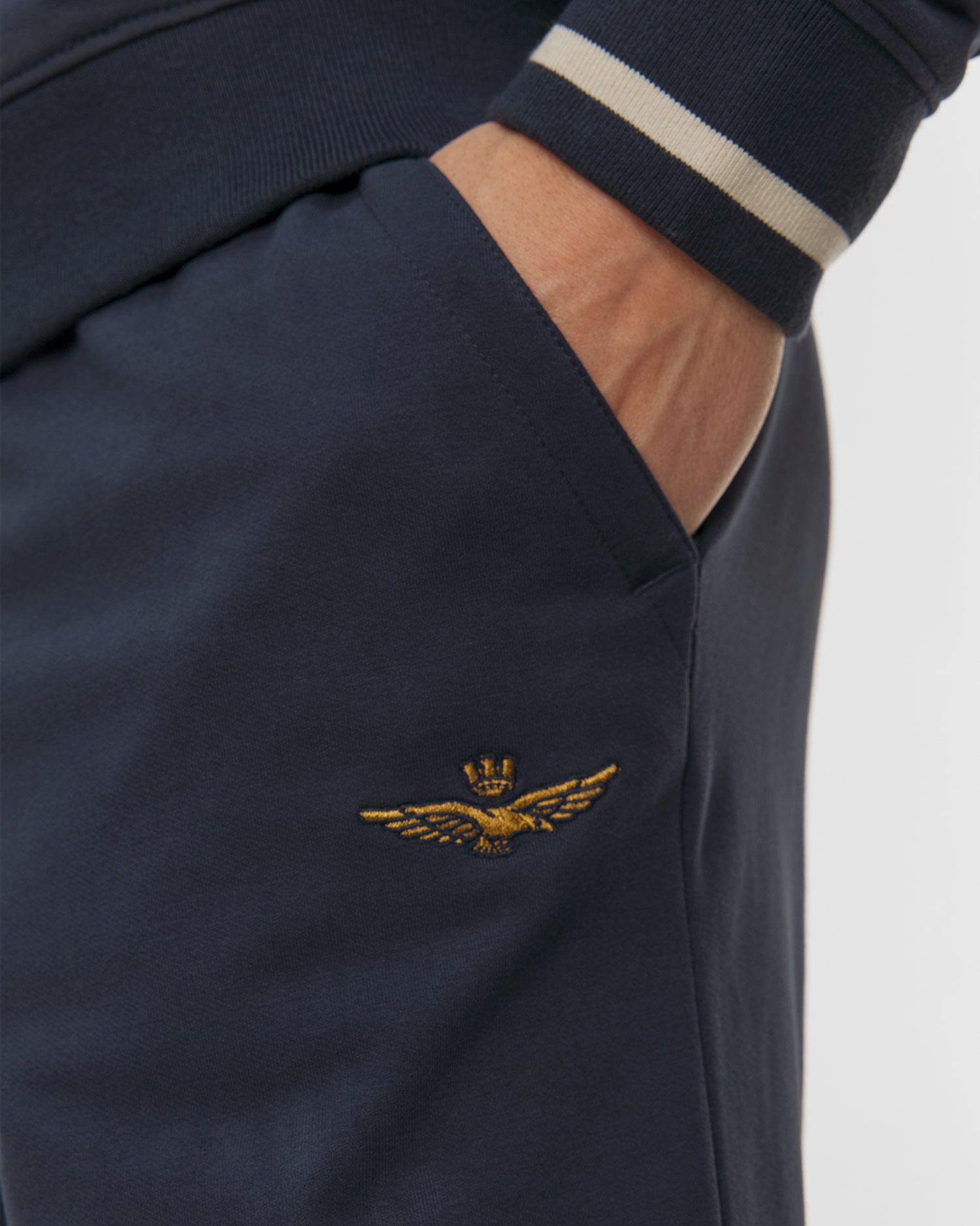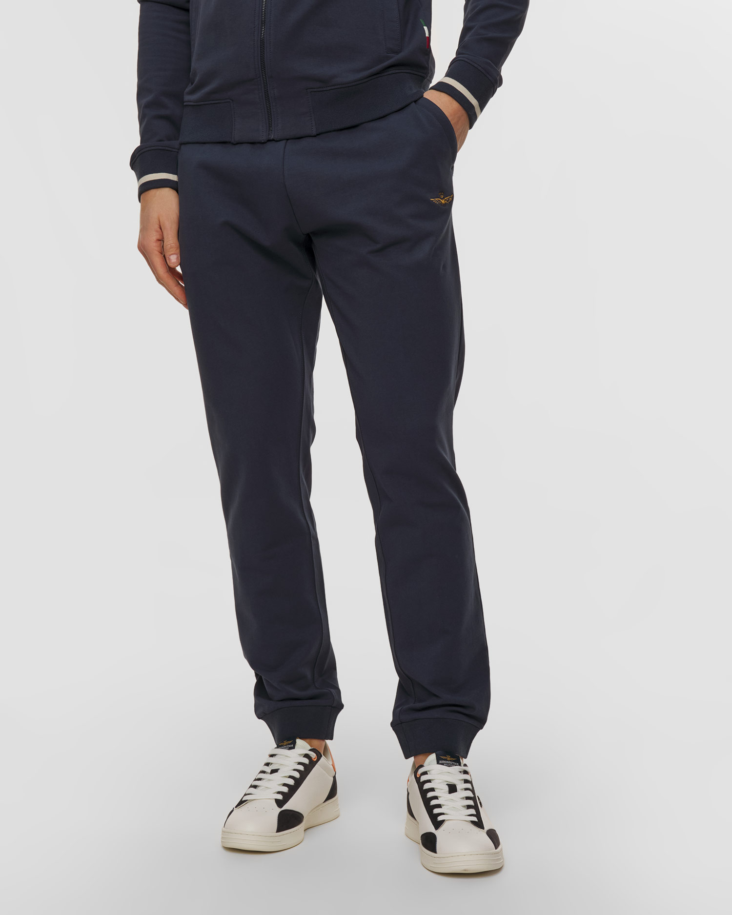 Die Aeronautica Militare Jogginghose für Herren in Marineblau hat eine sportliche, bis ins Detail raffinierte Form und wurde mit Blick auf Alltagskomfort entworfen. Die leichte Konstruktion und die dezenten Luftfahrt-Akzente verleihen dem Modell einen modernen, urbanen Charakter.