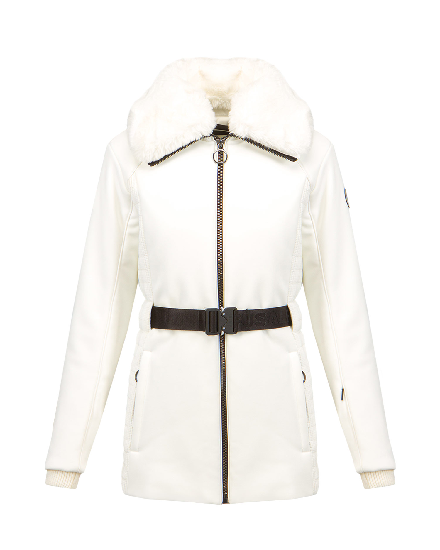 Die FUSALP CLEA Damenjacke begeistert mit einem eleganten Style, der Sie auf der Piste glänzen lässt. Aus technischem, winddichtem Schoeller® Softshell-Gewebe. Die wasserabweisende DWR-Imprägnierung schützt das Außenmaterial vor Feuchtigkeitsaufnahme bei leichtem Niederschlag oder Kontakt mit Schnee. Elastische Einsätze an den Seiten der Taille für noch mehr Bewegungsfreiheit. Isoliert mit einer dünnen Schicht Primaloft® Synthetikdaunen, um Sie jederzeit warm und komfortabel zu halten. Mit einem dekorativen Stahlreißverschluss. Der Kragen ist mit Kunstpelz besetzt, den Sie abnehmen können. Seitentaschen mit Reißverschluss. Elastischer Bund, der die Figur betont. Innere Schneemanschette. Ärmelbündchen mit elastischem Saumabschluss.