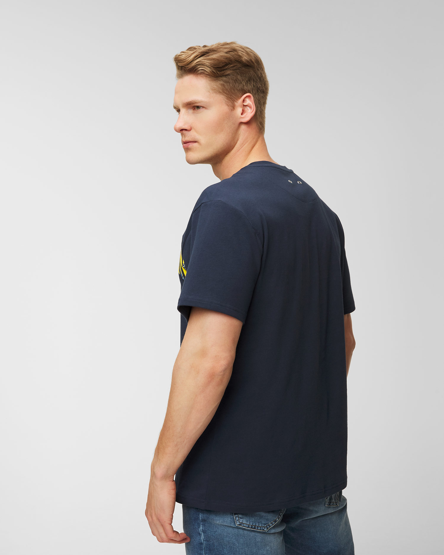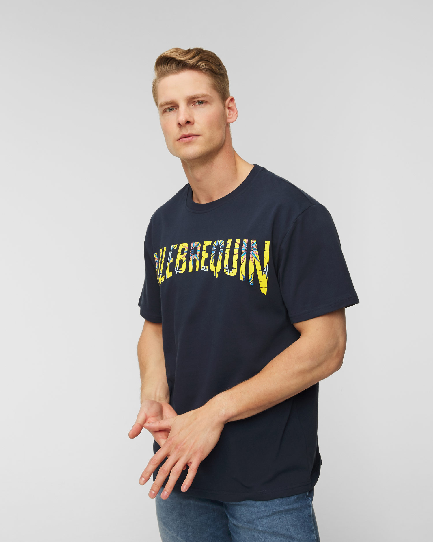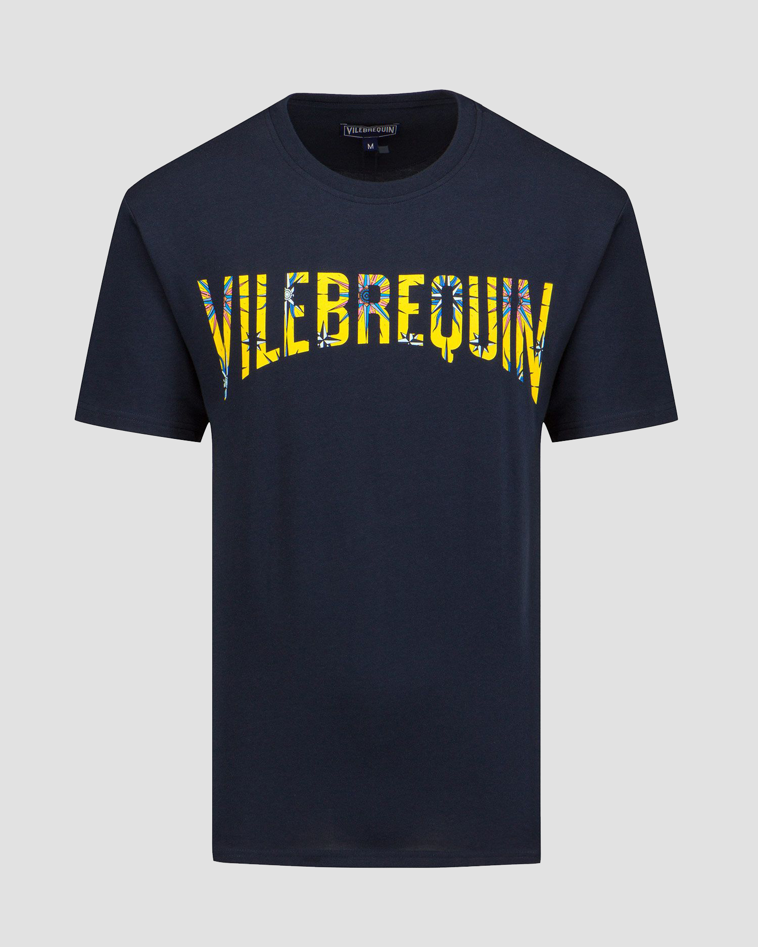 Das Vilebrequin Tareck T-Shirt aus Bio-Baumwolle ist perfekt für heiße Tage. Frontdruck mit großem Logo in provenzalischen Südstaatenfarben, Sternen und Windrosen. Der gerade Schnitt und Rundhalsausschnitt. Zwei Ösen im Nacken verweisen auf die Belüftungslöcher in Badeshorts.