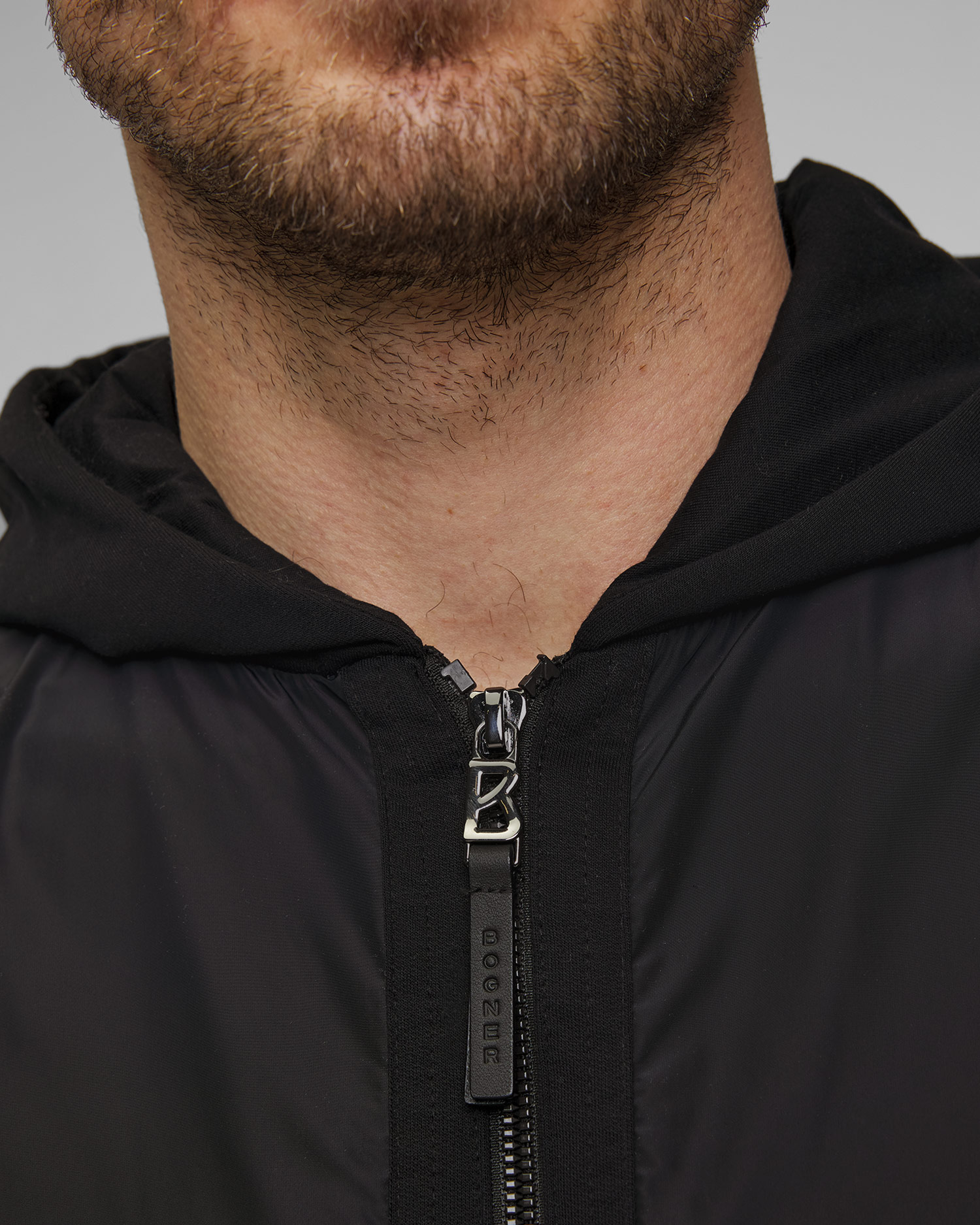 The BOGNER Devon sweatshirt is a combination of sporty elegance and functionality. Made of pure cotton with a nylon front panel and quilted hood, it provides comfort and style at the highest level. The two-way zip with a BOGNER metal slider and leather zip pull adds an exclusive touch, while the ribbed cuffs and hem guarantee a perfect fit.