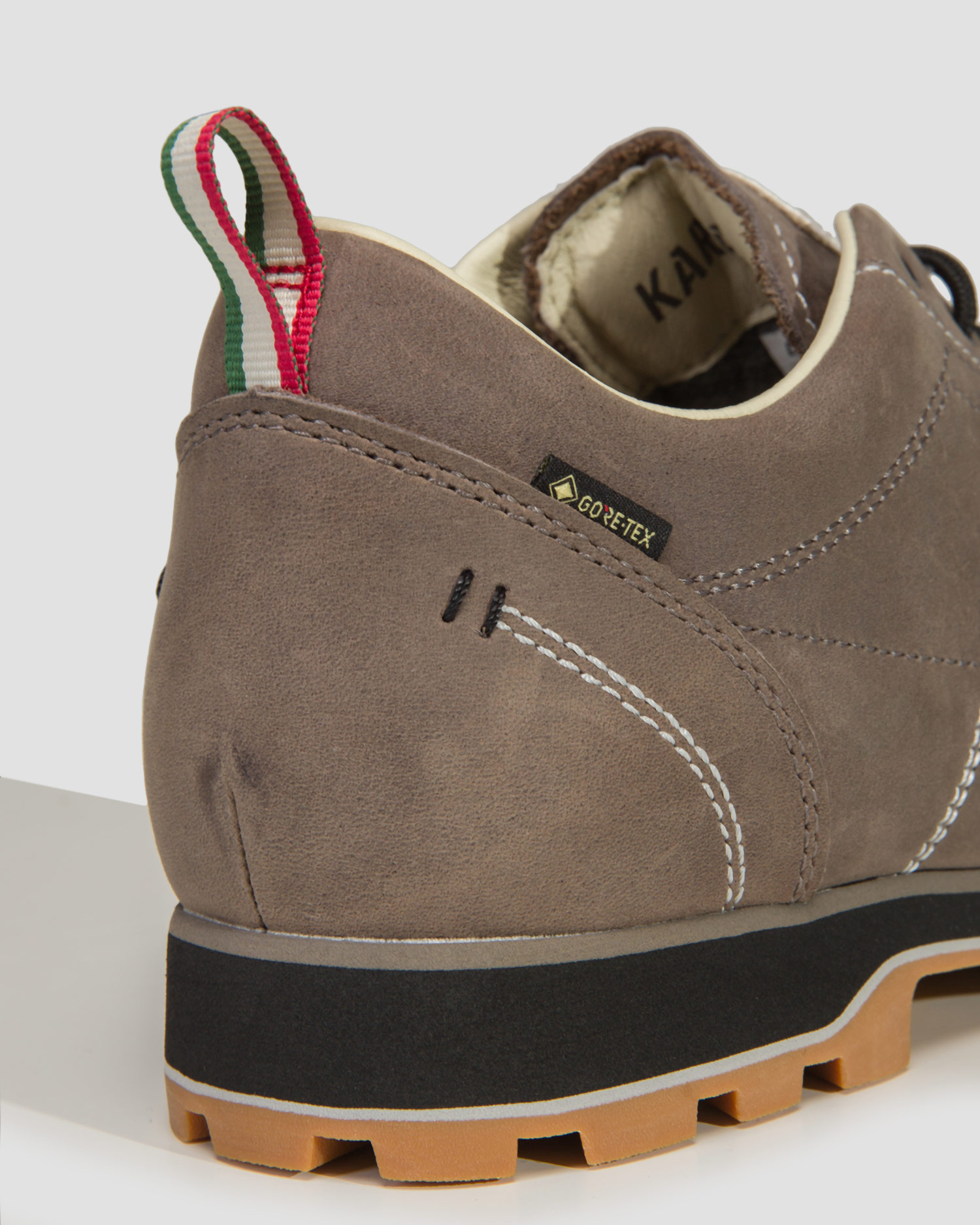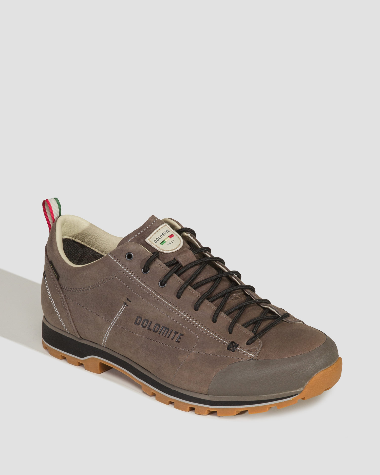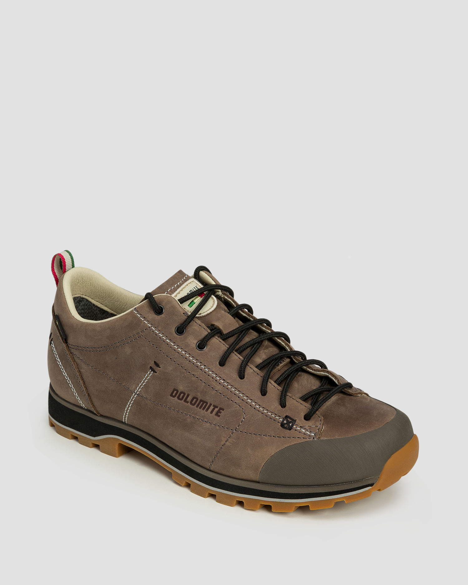 Les chaussures DOLOMITE 54 LOW FG GTX sont des chaussures de trekking polyvalentes qui combinent l'esthétique du modèle emblématique 54 avec les dernières technologies utilisées dans la production des chaussures de montagne. Elles ont été conçues pour la randonnée en montagne en terrain facile et pour le tourisme dans un sens large du terme. Elle fonctionnera parfaitement lors d'un week-end hors de ville ou pendant des vacances actives. Le haut niveau de protection contre l'eau est dû à la membrane Gore-Tex®. Grâce à cela, vos pieds seront gardés au sec et protégés contre le refroidissement. La membrane respirante est également responsable de l'évacuation de l'humidité de l'intérieur de la chaussure. Pendant une activité intense, elle ne permet pas à l'humidité de s'accumuler sur la peau. Ainsi, elle assure un confort thermique optimal. La partie frontal de la chaussure est protégée par un bout dur en caoutchouc. Il est conçu pour protéger vos orteils contre les chocs et le trempage accidentel au contact de l'eau. Un élément important des chaussures est le système DAS light dévéloppé par la marque Dolomite. Il est composé d'une doublure anatomiquement profilée qui offre un ajustement confortable, réduit la fatigue et assure la biomécanique naturelle du pied. La semelle Vibram® Ice Trek 2 garantit une adhésion élevée et une excellente stabilité sur sol irrégulier. Sa dureté moyenne conviendra aux randonnées en montagne et dans la forêt. La chaussure Dolomite 54 LOW GTX est destinée aux randonneurs qui privilégient le confort, la sécurité et la protection contre les intempéries.
