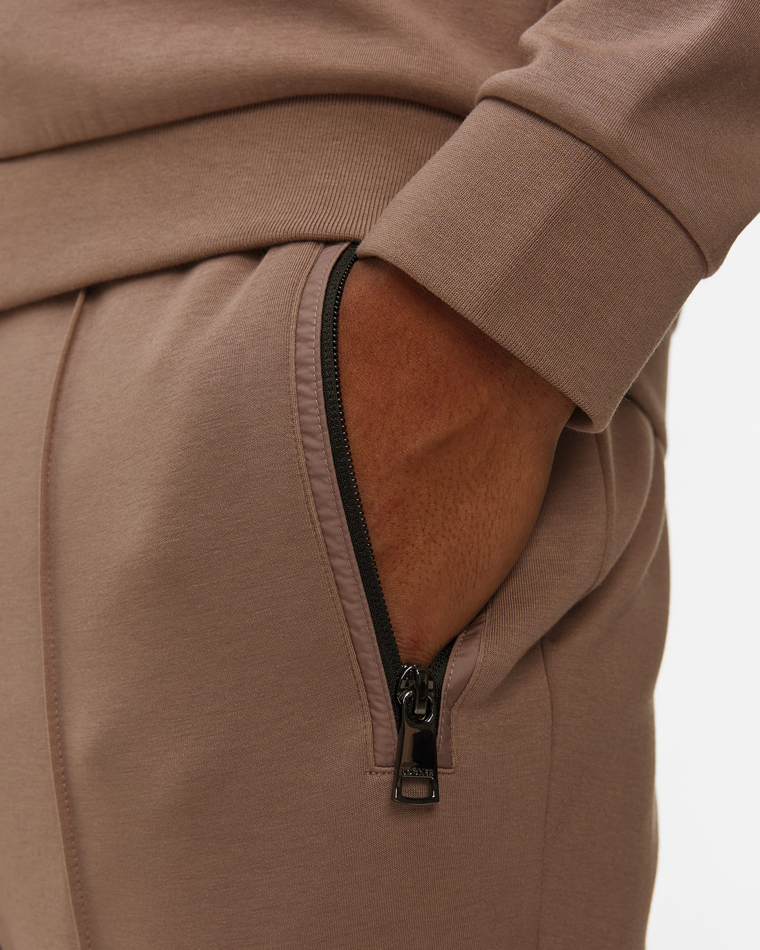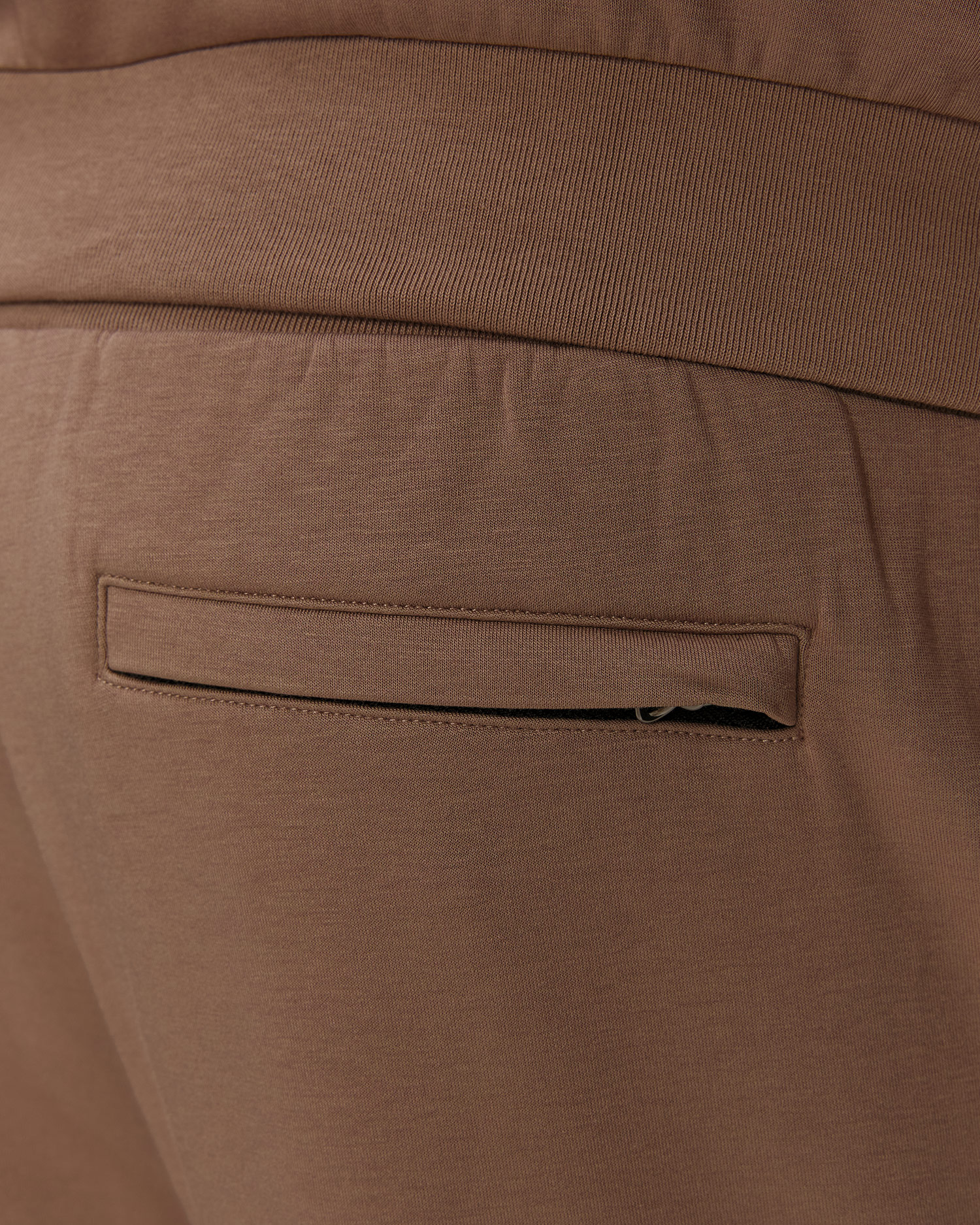 - Poches latérales zippées : associent fonctionnalité et esthétique épurée, en sécurisant les petits objets sans perturber la ligne du pantalon