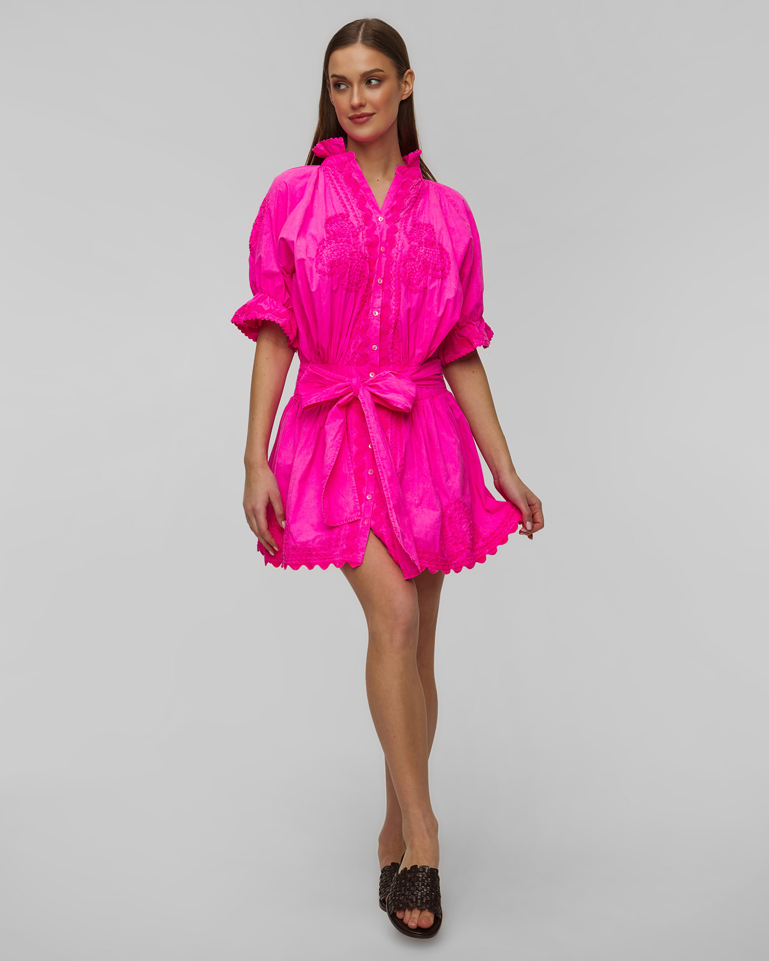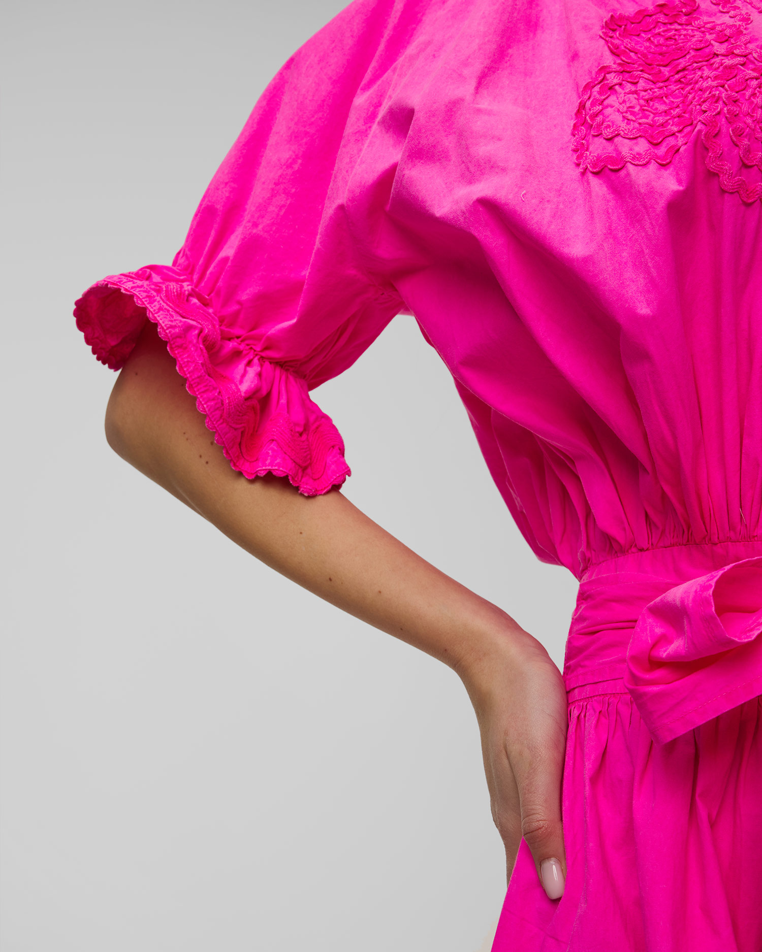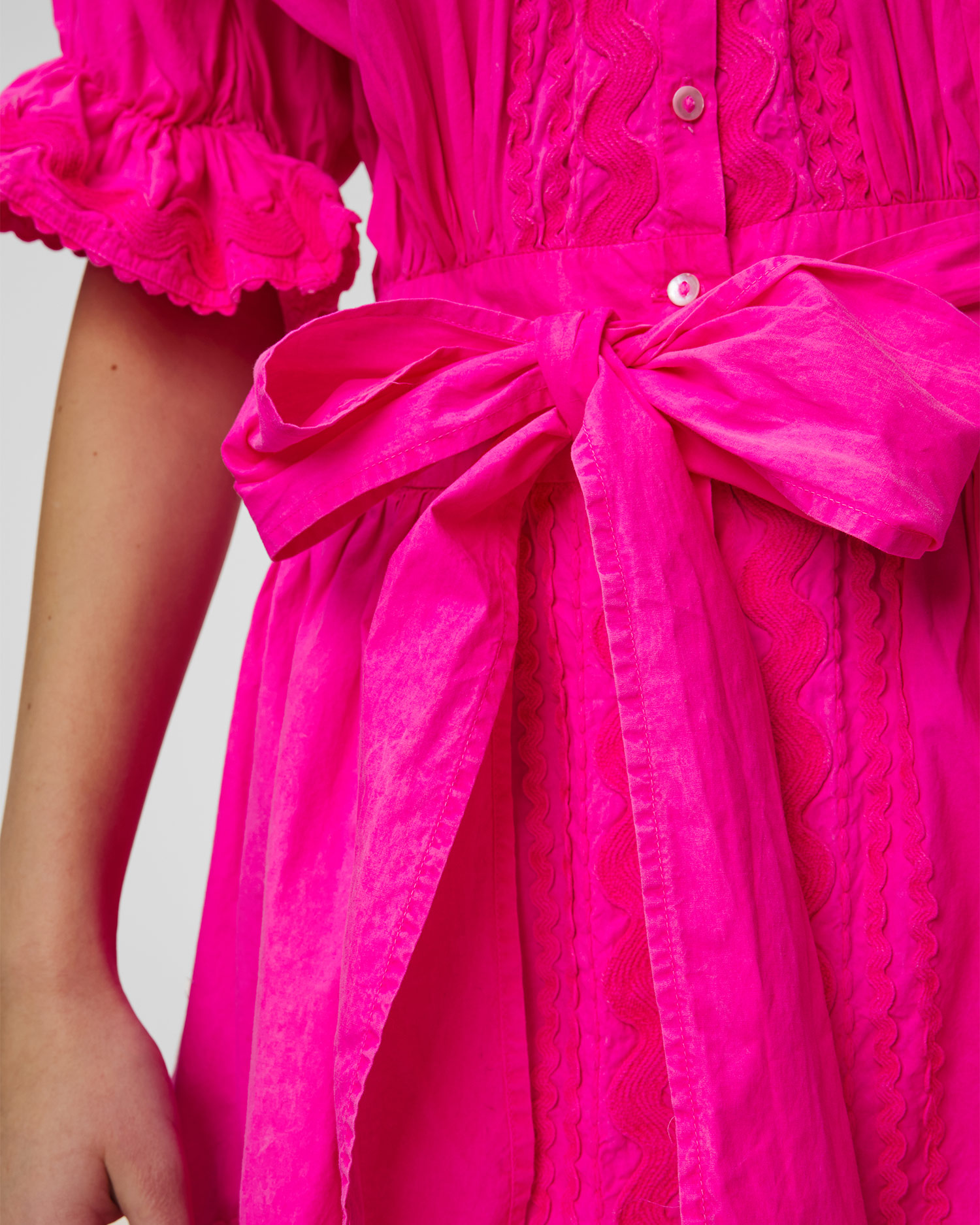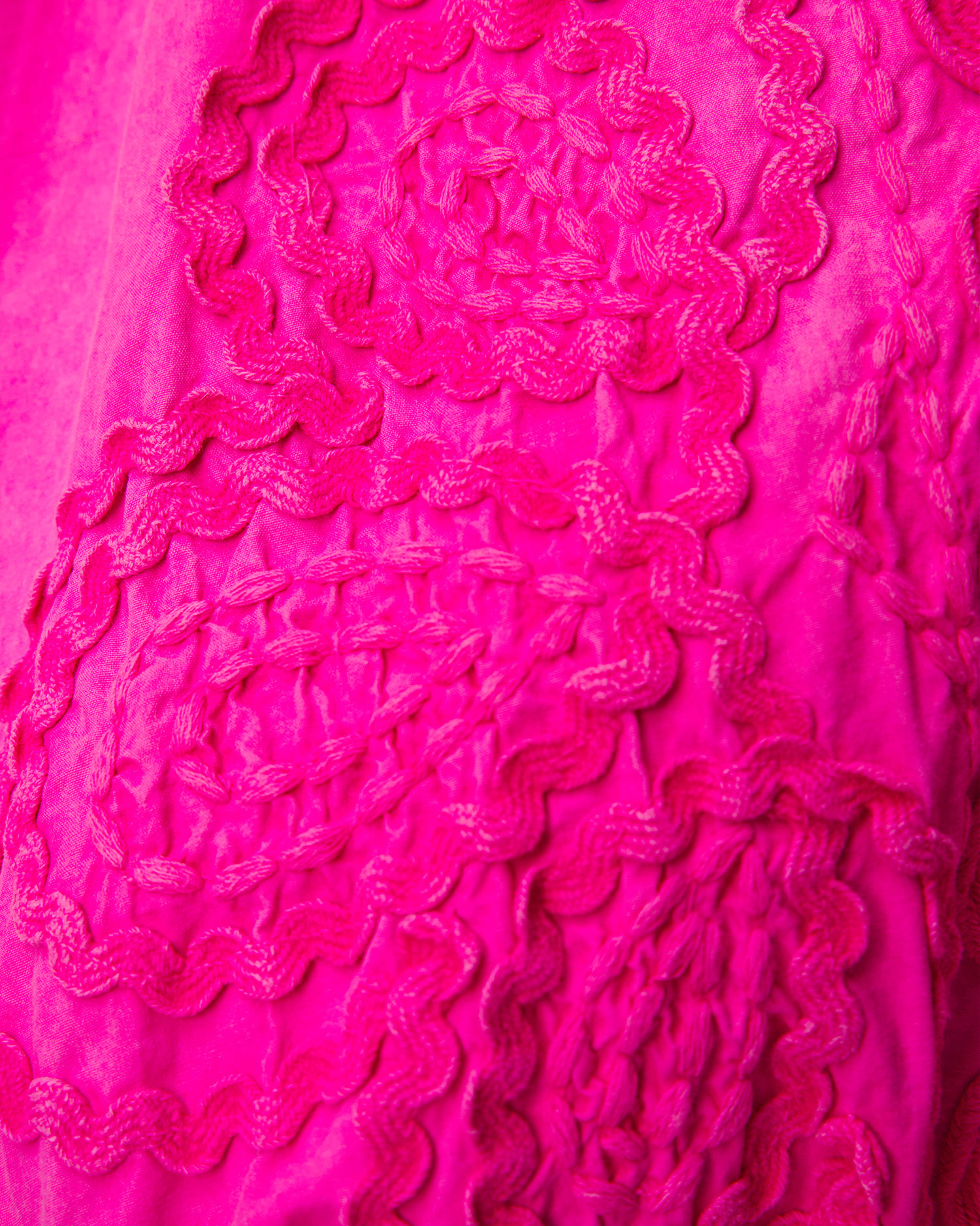 Robe d'été avec broderie pour femmes Juliet Dunn Poplin Blouson in Fuchsia with Ric Rac Embroidery JD8041-fuc