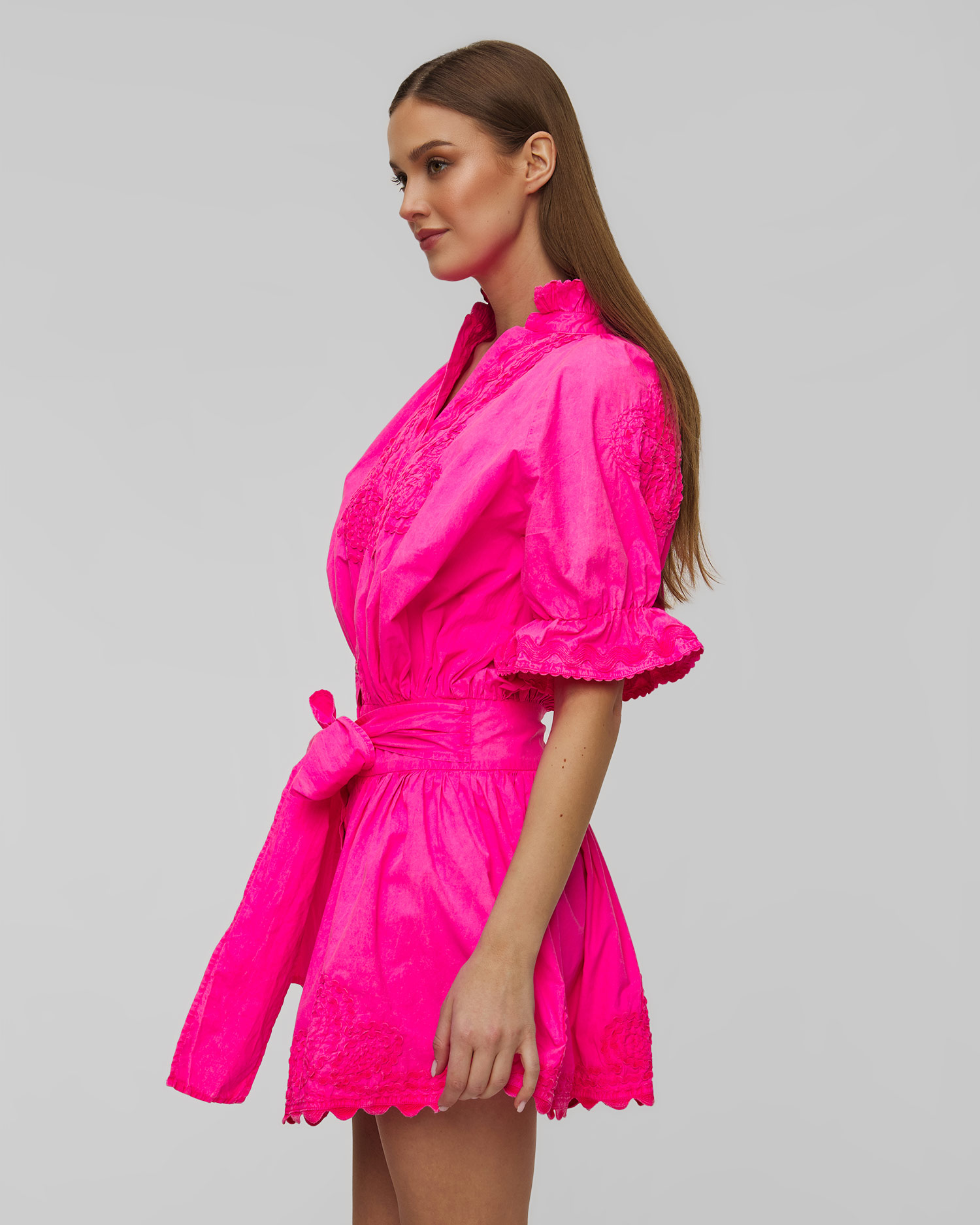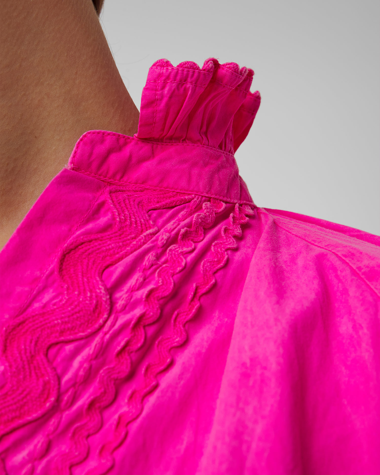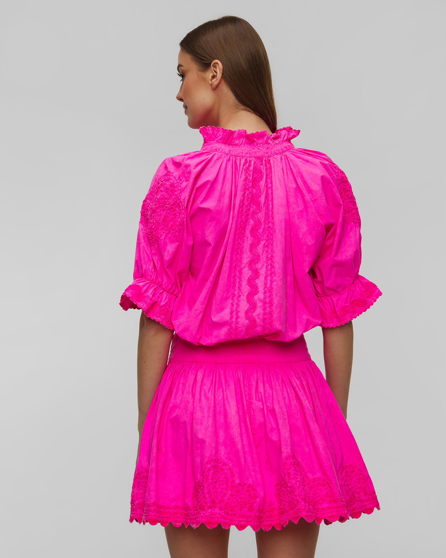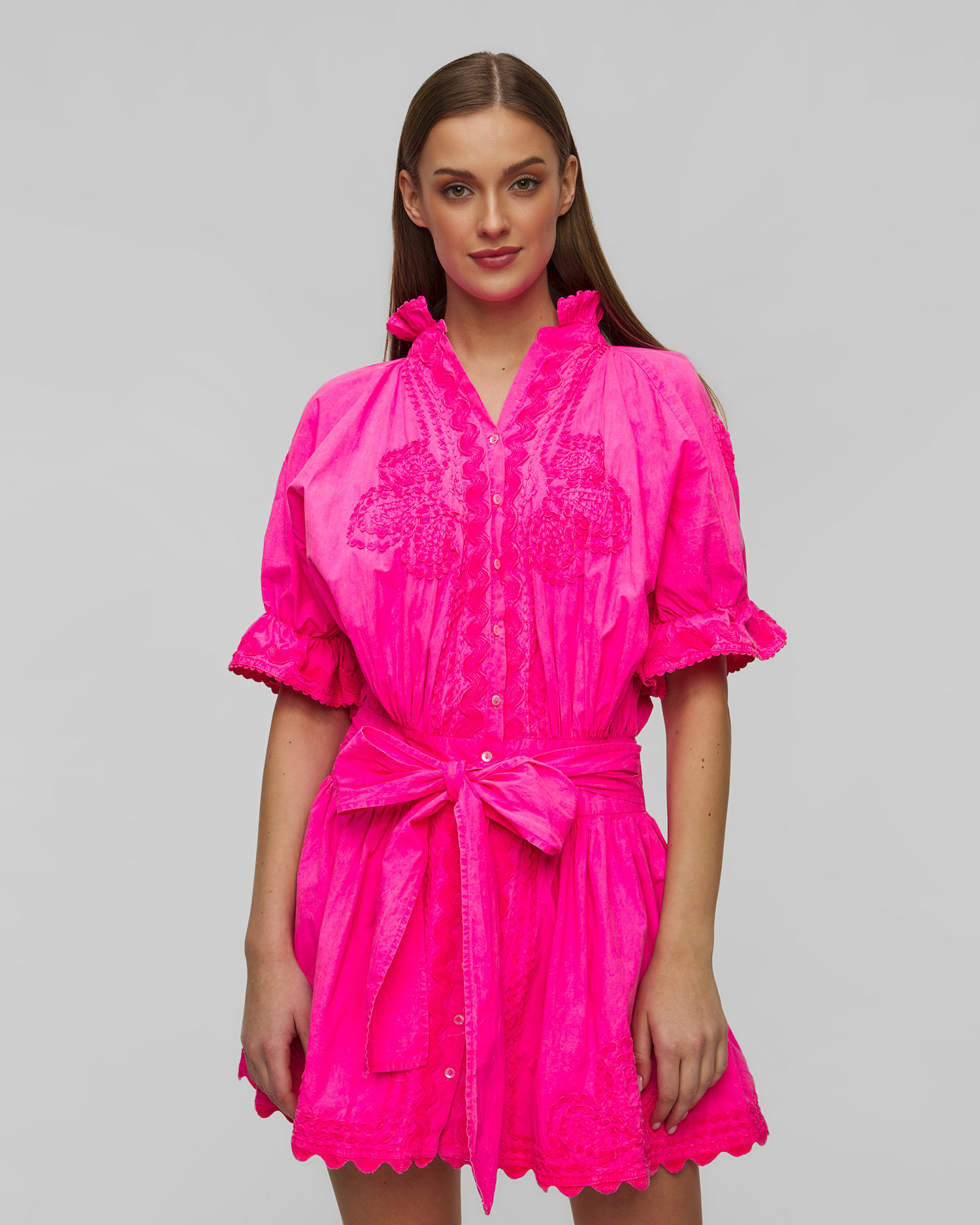 Robe d'été avec broderie pour femmes Juliet Dunn Poplin Blouson in Fuchsia with Ric Rac Embroidery JD8041-fuc