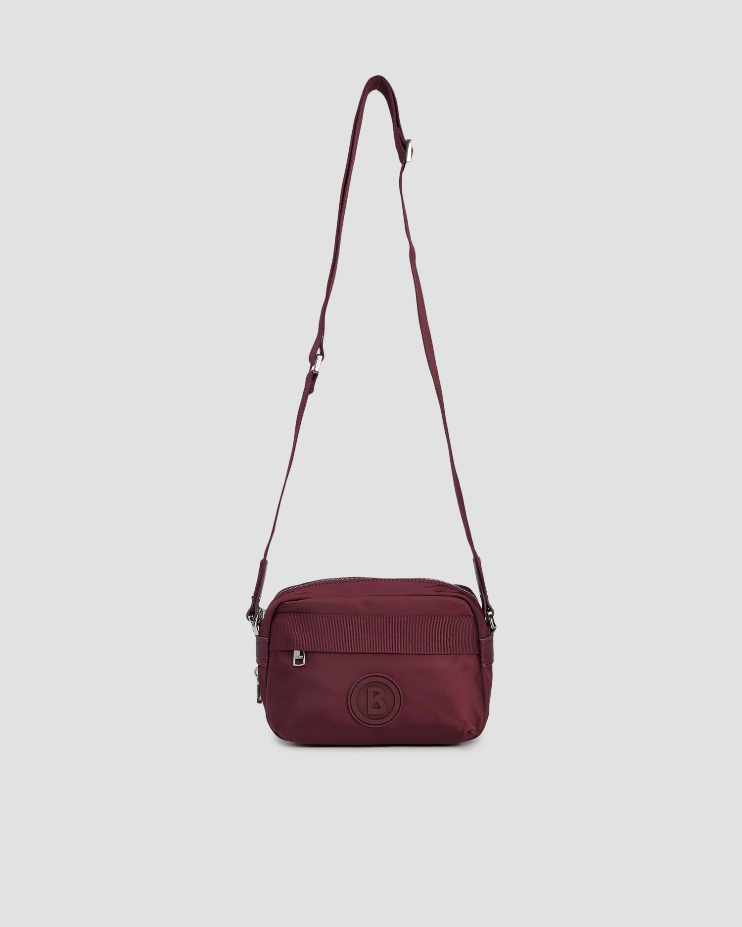 BOGNER Maggia Lidia : sac à bandoulière quotidien qui allie fonctionnalité et minimalisme moderne. Le nylon lisse et mat se drape avec légèreté et élégance, tandis que les rubans en gros-grain subtils et l’emblème B lui confèrent un caractère de luxe sportif.