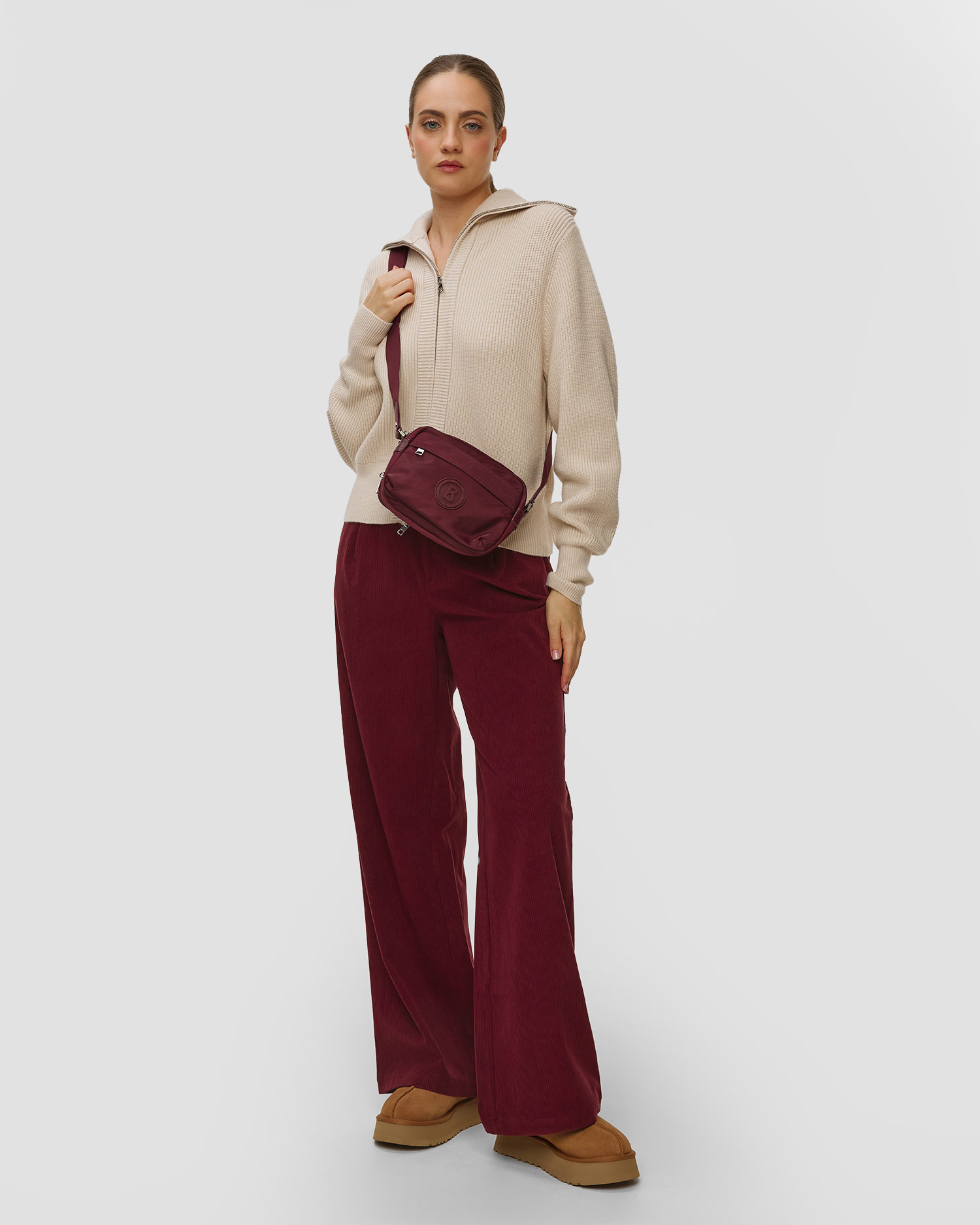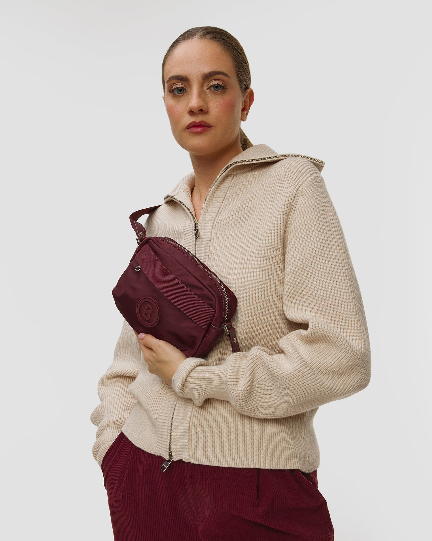 Fait intéressant : La série d’accessoires en nylon BOGNER a été conçue pour répondre aux besoins d’un style de vie actif, le matériau technique et les rubans en gros-grain font référence à l’ADN sportif de la marque, combinant fonction et élégance dans une seule forme.