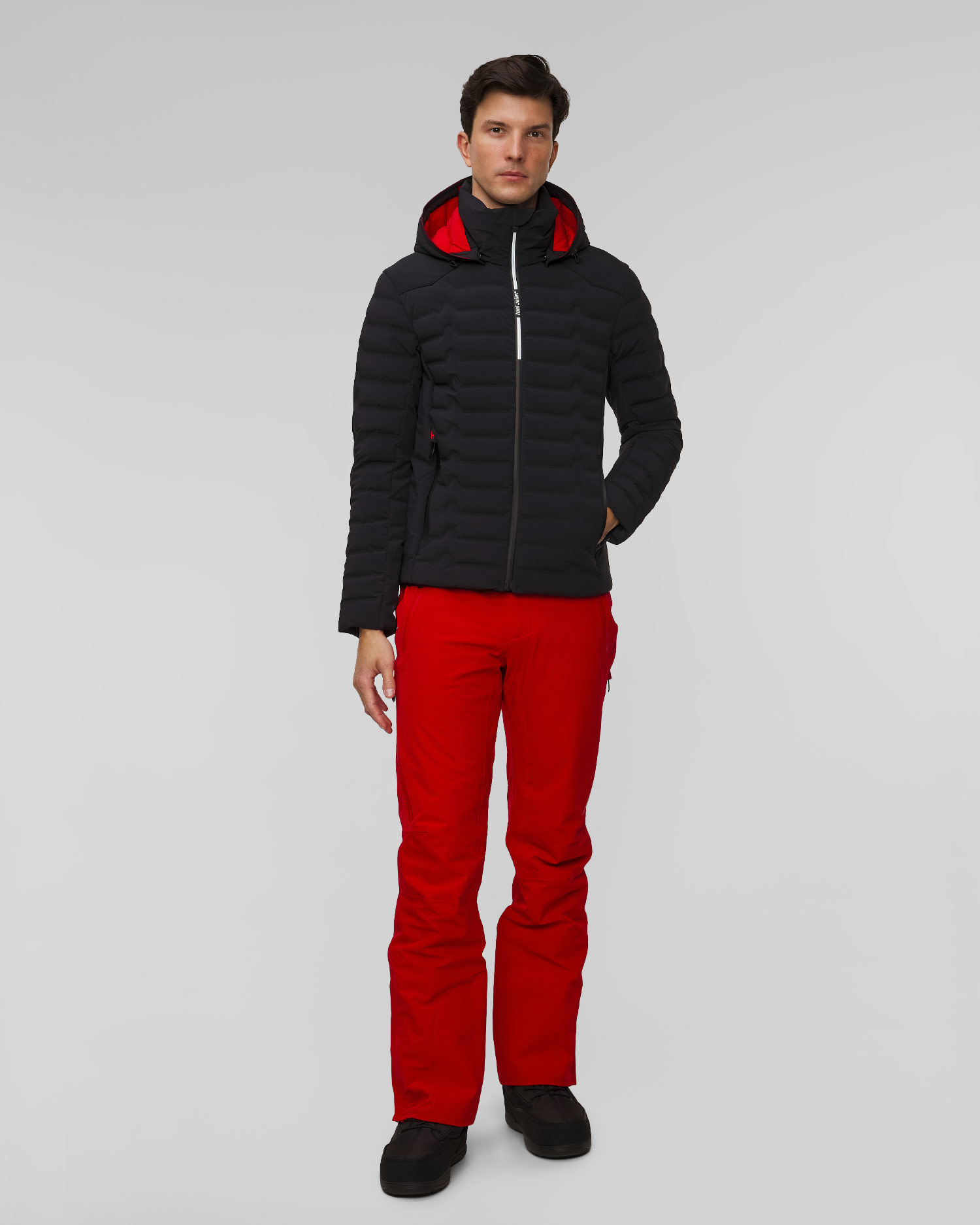 La veste, avec une coupe ajustée, épouse parfaitement la silhouette tout en garantissant une totale liberté de mouvement. Son côté pratique est souligné par des coutures scellées avec précision et des fermetures éclair imperméables. Les autres caractéristiques comprennent des poignets réglables et une capuche amovible. Elle est complétée par des poches pour les forfaits de ski et le masque de ski, qui augmentent la fonctionnalité de la veste sur les pistes.