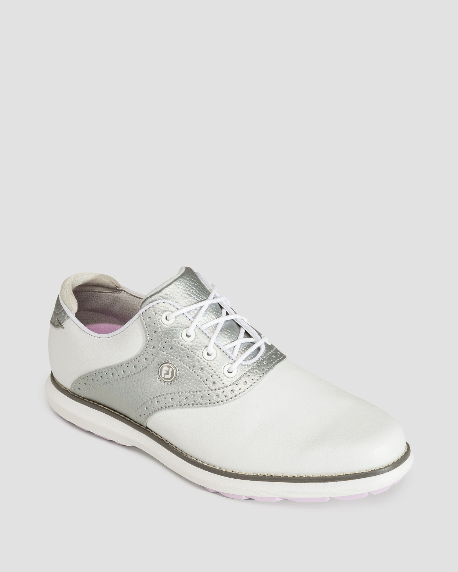 Le scarpe da golf da donna uniche FootJoy WN FJ Traditions Spikeless sono una combinazione di nuovissima tecnologia, comodità e versatilità che renderanno ogni round sul campo da golf un piacere.