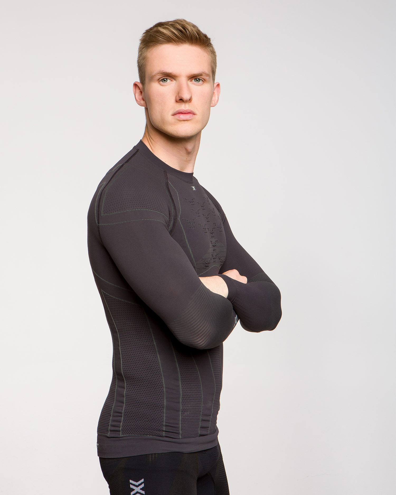 Koszulka X-BIONIC MOTO ENERGIZER 4.0 to koszulka termoaktywna z długim rękawem i okrągłym kołnierzykiem. Stworzona specjalnie z myślą o motocyklistach, a jej konstrukcja została całkowicie podporządkowana zwiększaniu wydajności i zapewnieniu optymalnej termiki bez względu na okoliczności, nawet podczas bardzo długiej jazdy w niesprzyjających warunkach.