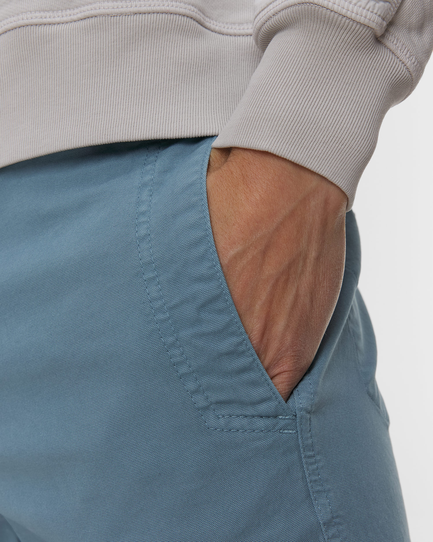 - Căptușeala buzunarelor din țesătură tehnică – netedă și rezistentă, sprijină confortul și forma de lungă durată a interiorului pantalonilor.