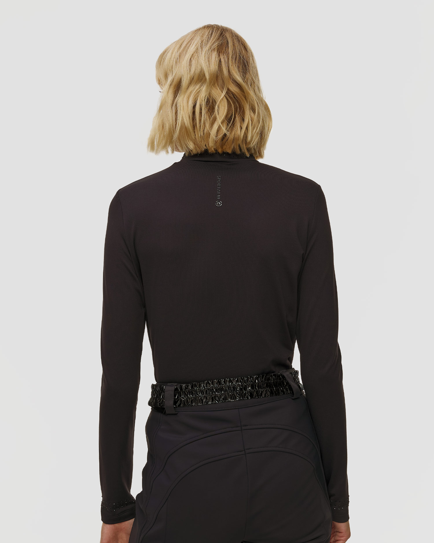 Puloverul cu guler înalt de schi Sportalm este o combinație de funcționalitate sportivă și eleganță subtilă. Ținuta croită și materialul elastic asigură confort în timpul activității, în timp ce ornamentele cu cristale adaugă o notă sofisticată.
