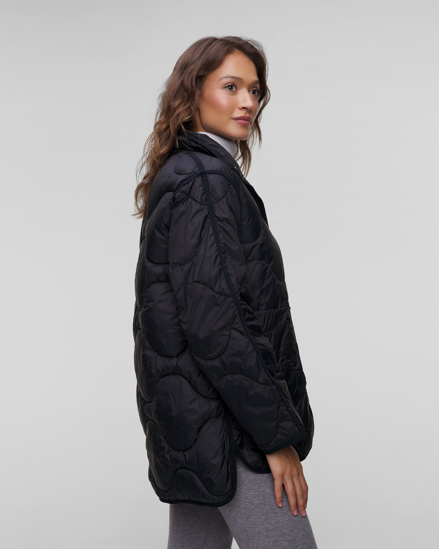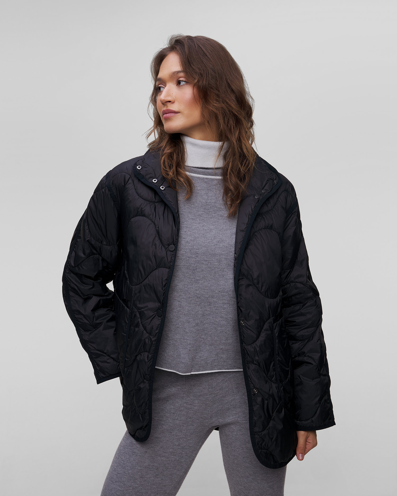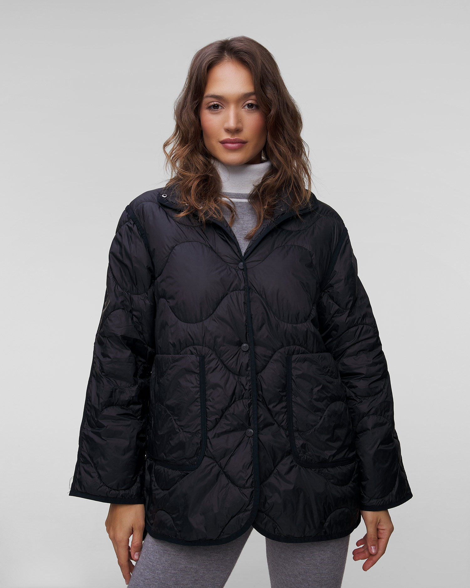 Dámska bunda Deha predstavuje nadčasovú klasiku s originálnym prešívaním, dodávajúcim bunde štýl a eleganciu. Ideálna na prechodné dni, keď potrebujete niečo módne a zároveň funkčné. Vďaka širokej, uvoľnenej siluete je bundu možné nosiť na rôzne spôsoby, v športových alebo elegantnejšie ladených outfitoch. Zapínanie na cvočky, vybavená dvoma priestrannými vreckami. Lemovanie na koncoch dotvára charakter vetrovky.