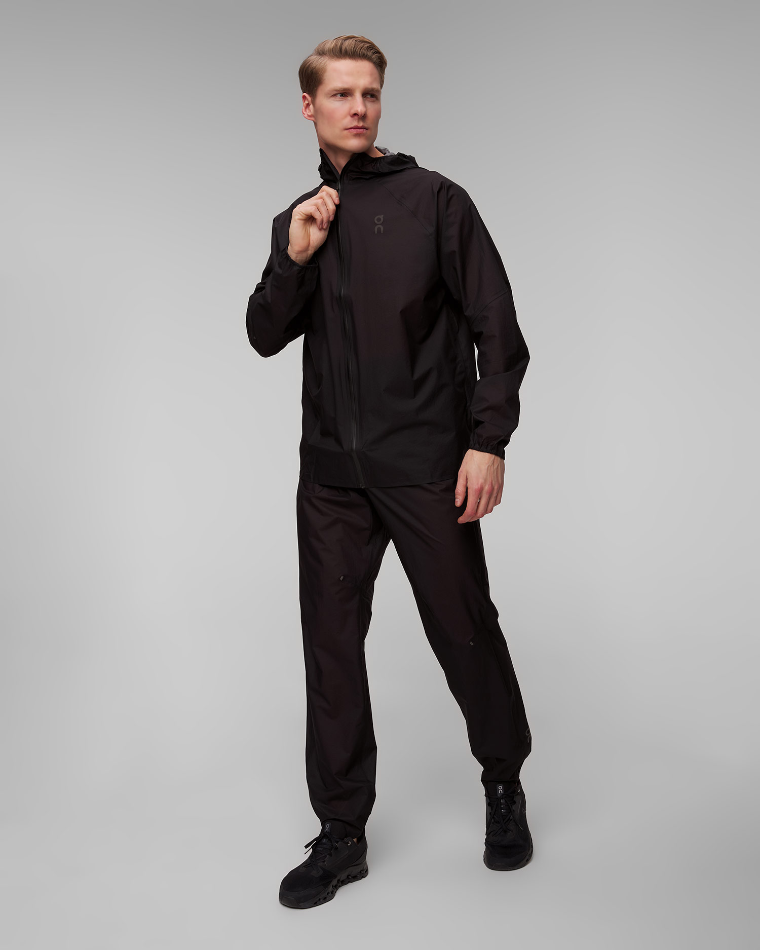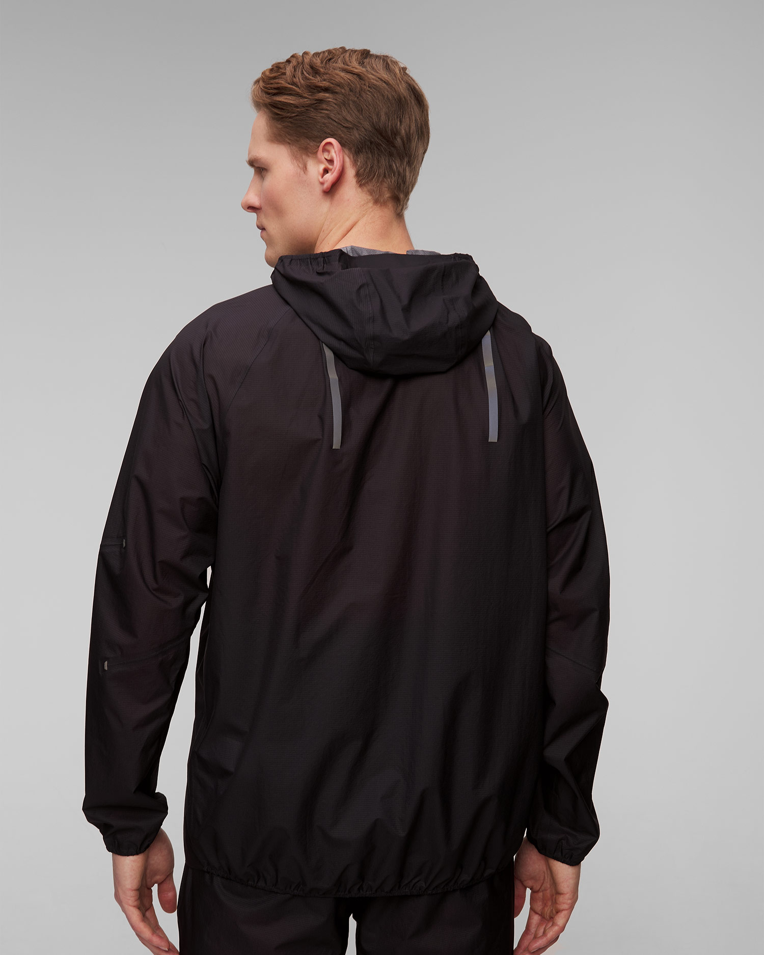 Vyrobená z technickej tkaniny integrovanej s membránou, ktorá poskytne plnú ochranu proti vetru a dažďu. Hydrofóbna úprava DWR chráni povrch tkaniny pred premoknutím. Vysoká priedušnosť umožní únik prebytočnej vlhkosti a tepla. Elastické lemovanie okrajov pre lepšie prispôsobenie, ale strih umožňuje úplnú voľnosť pohybu. Voľnejšia tkanina na chrbte umožňuje nosenie bundy cez bežecký batoh.