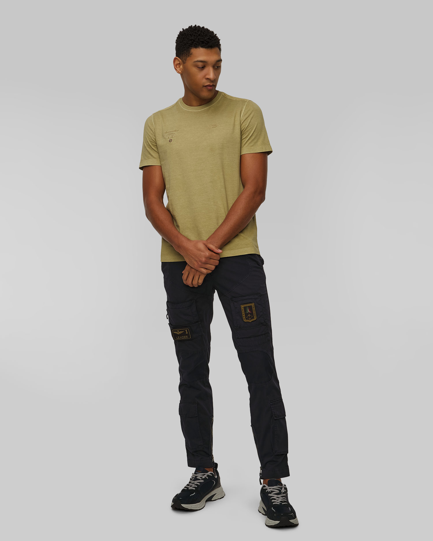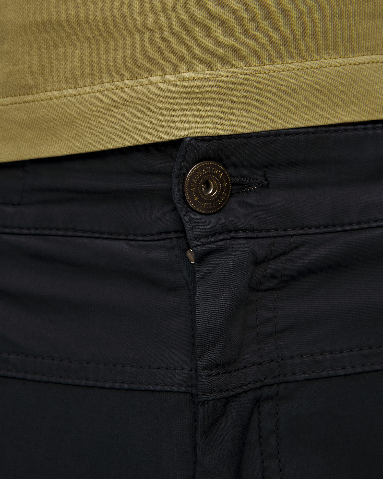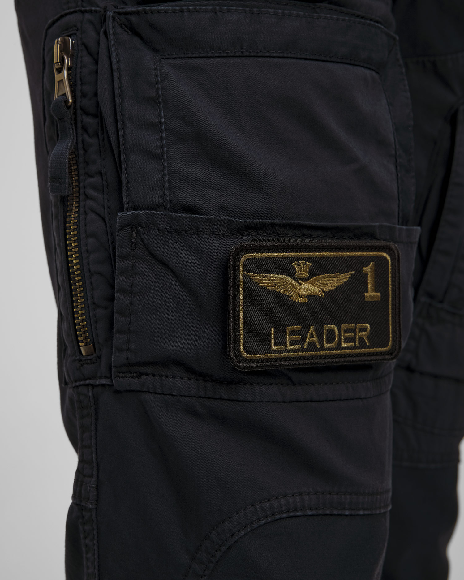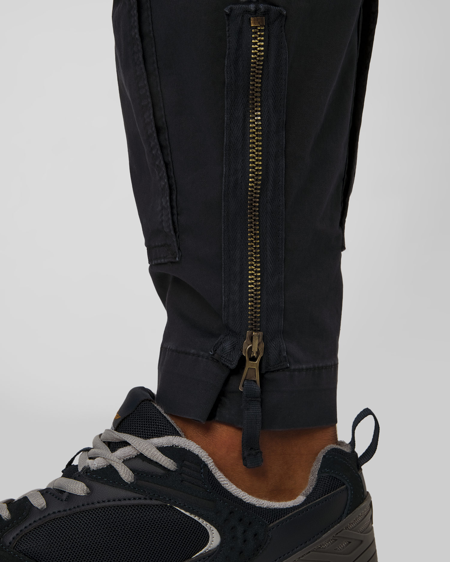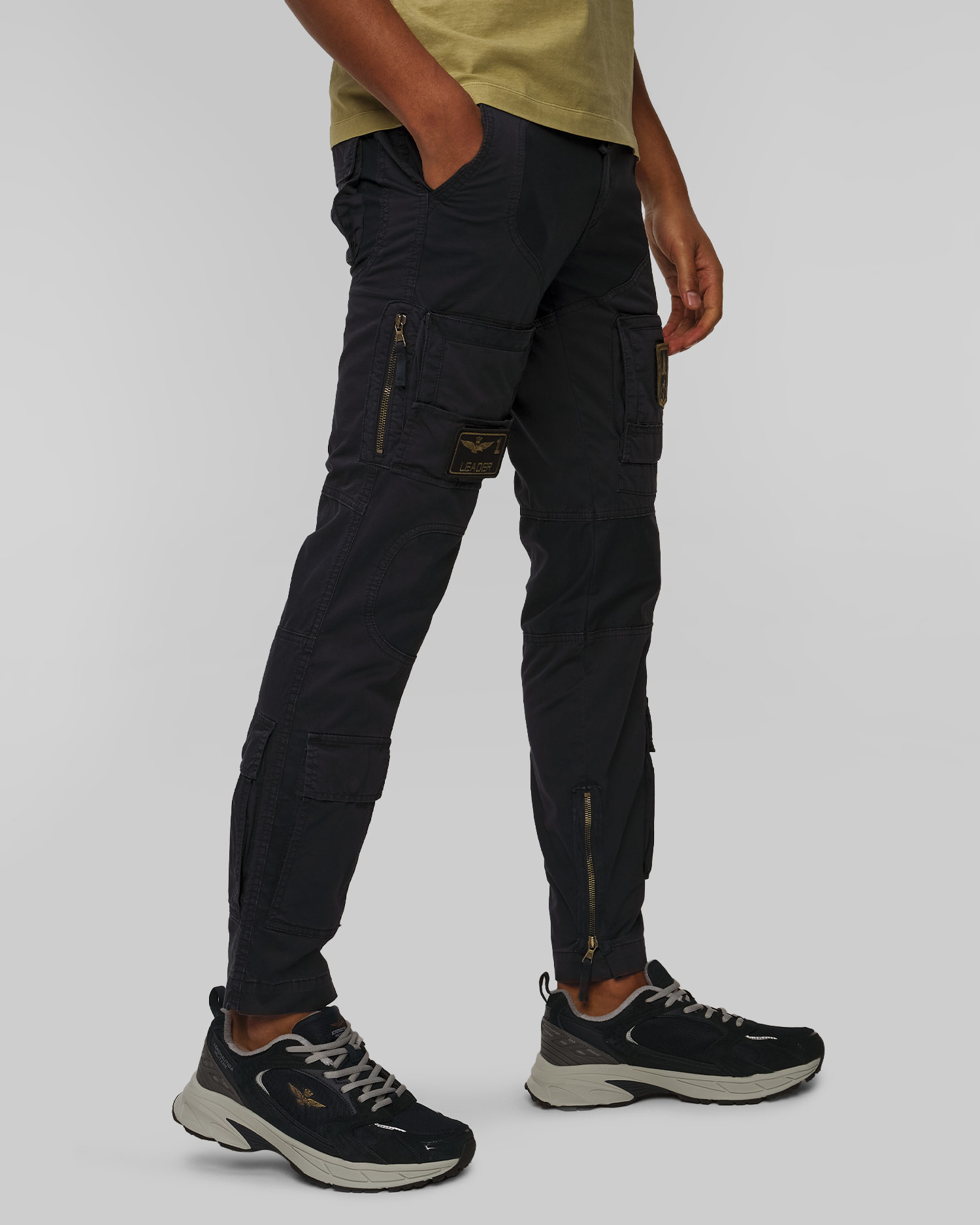 Pánske tmavomodré cargo nohavice Aeronautica Militare predstavujú jedinečný návrh pre fanúšikov vojenského štýlu. Inšpirované antigravitačnými kombinézami pilotov talianskeho letectva. Vyhotovené z vysokokvalitnej bavlny s prídavkom elastanu, vďaka čomu zaručujú trvácnosť a komfort nosenia. K celkovej funkčnosti a jedinečnému štýlu prispievajú charakteristické vrecká, pôvodne navrhnuté pre pilotov umožňujúce ľahší prístup k letovým plánom. Kontrastné látkové vložky dodávajú nohaviciam dynamický a moderný vzhľad. Vďaka elastickému materiálu a pravidelnému strihu ponúkajú tieto nohavice voľnosť pohybu a univerzálnosť pri každodennom nosení.