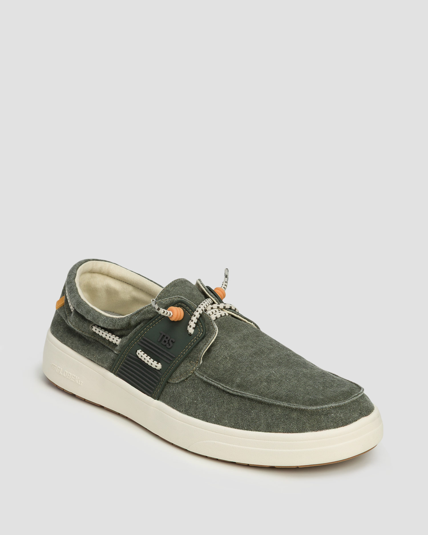 Pánske topánky TBS Geoboat predstavujú modernú interpretáciu klasickej námorníckej obuvi, navrhnutej pre mužov, ktorí si cenia ľahkosť, pohodlie a vyvážený prístup k móde. Vyhotovené z ľanovej tkaniny - vďaka svojej priedušnosti sa postarajú o pohodlie počas teplejších dní. Gumová podrážka zaručuje pohodlie a stabilitu pri chôdzi. Topánky budú ideálne na palubu jachty, ale aj ako prvok každodenného mestského outfitu.