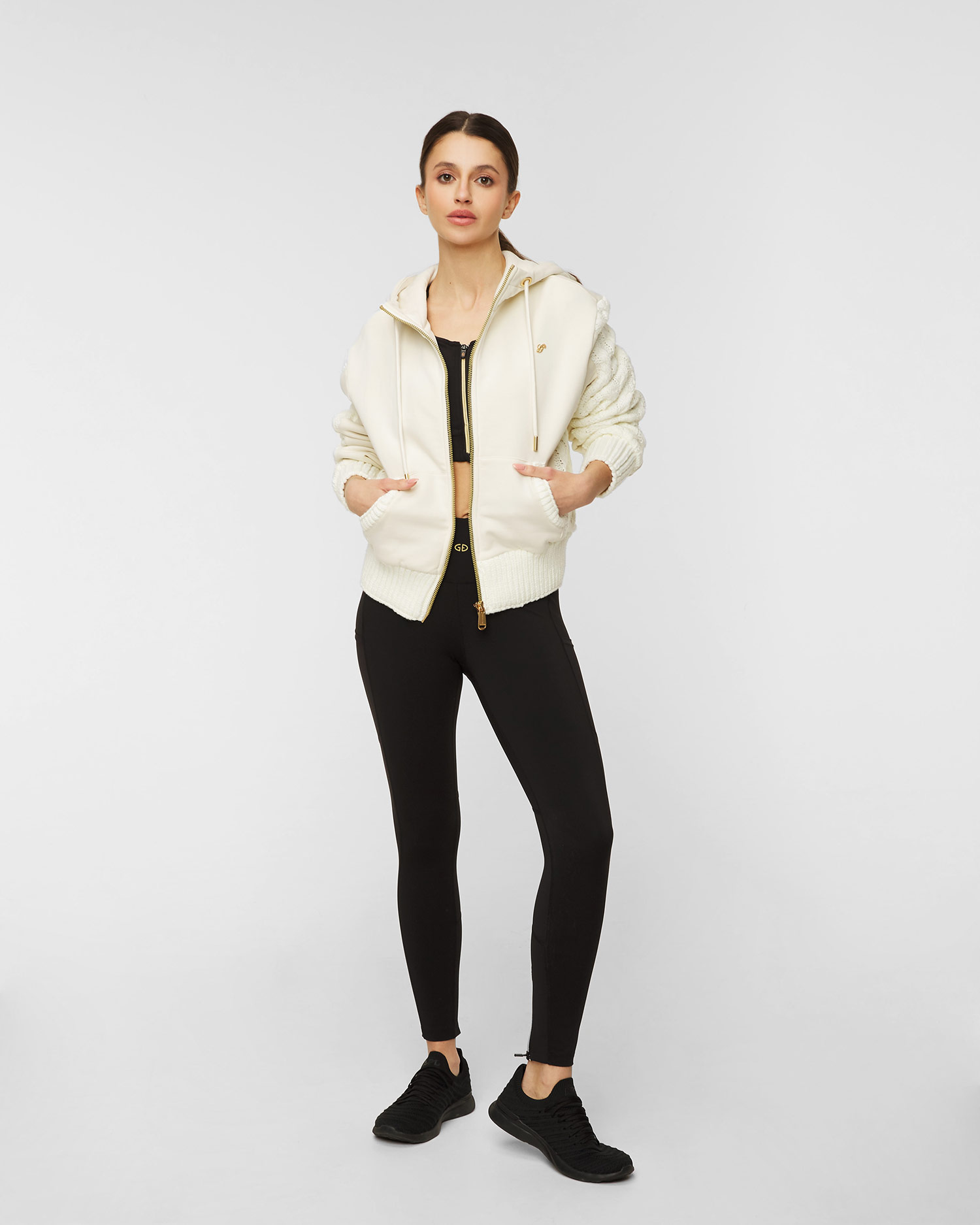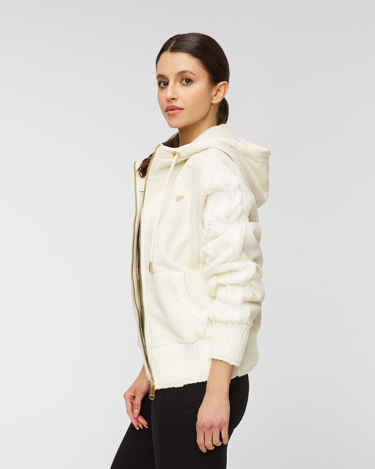 Wykonana z ciepłego, szczotkowanego polaru, aby skutecznie chronić przed chłodem. Rękawy, talia oraz ściągacze ozdobione wstawkami z dzianiny. Zapinana na ozdobny zamek. Kaptur regulowany za pomocą sznurków. Z przodu dzielona kieszeń typu kangurka.